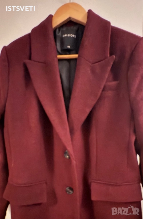 Модерно дълго палто в цвят бордо, много запазено. 30% вълна