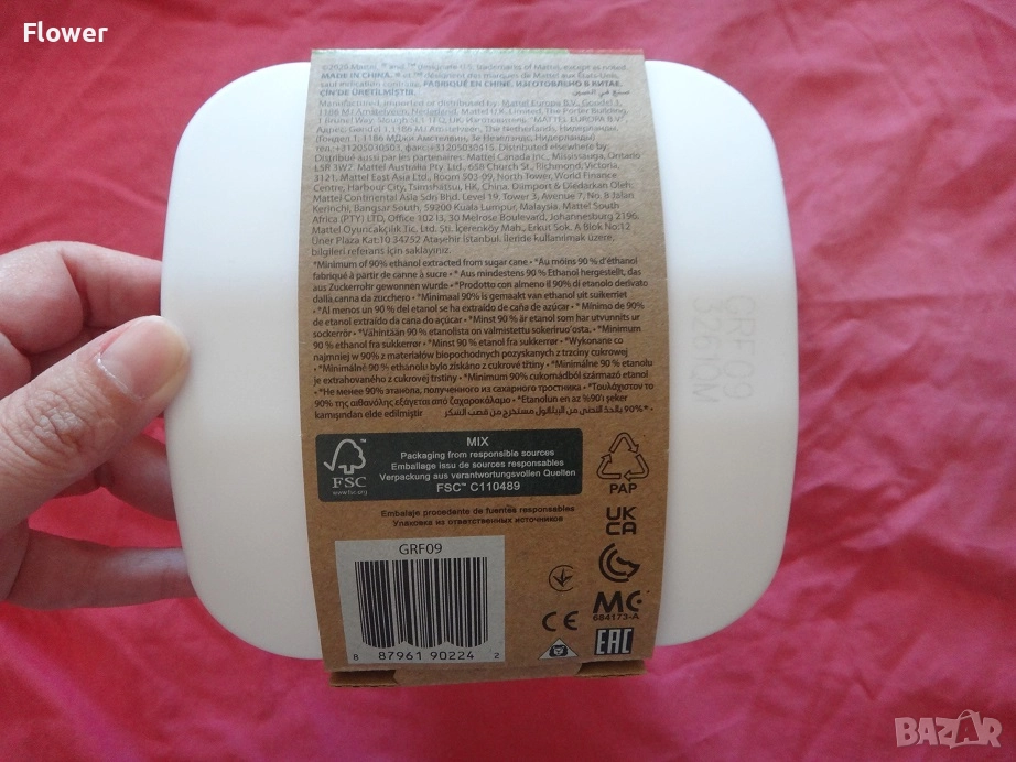 Играчката е направена от минимум 90% етанол, извлечен от захарна тръстика.
