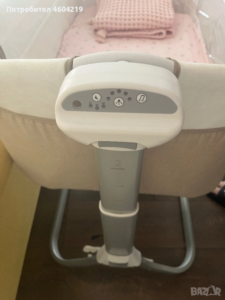 • Детектор, който улавя движението на детето и автоматично включва люлеещия механизъм;