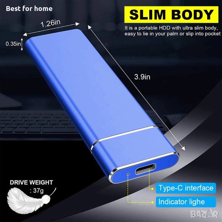 ●Свръхлек и изключително преносим —— Подобрен преносим SSD диск с размери 7.4x5.73x1 см/5.9x2.2x0.4 инча и тегло 75 г (2.65 унции), този преносим SSD е ултралек и миниатюрен. Лесен и удобен за носене. Преносимият SSD диск отговаря на вашите изисквания за преносимост по всяко време и навсякъде, стига да е осигурен достъп до устройства с USB слотове.
