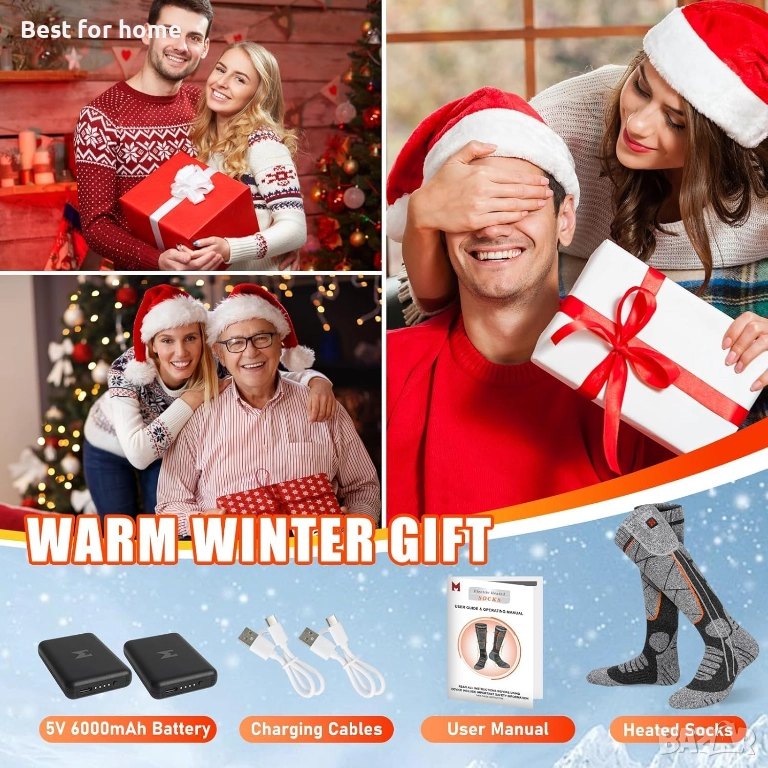 【Топъл зимен подарък】Електрическите отопляеми чорапи са идеални за зимни дейности на открито и закрито. Независимо дали карате ски, туризъм, мотоциклетизъм, къмпинг, лов, риболов или просто си почивате у дома, те са идеални и стоплящи сърцето подаръци за вашите близки за Свети Валентин, Деня на благодарността, Коледа и Нова година.