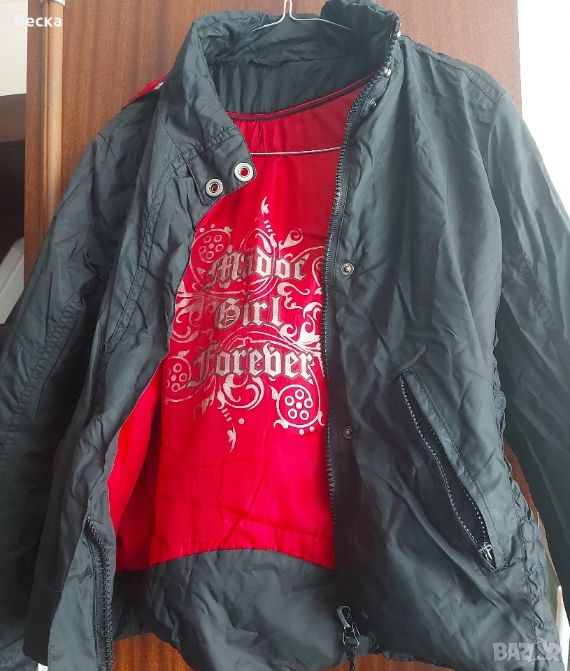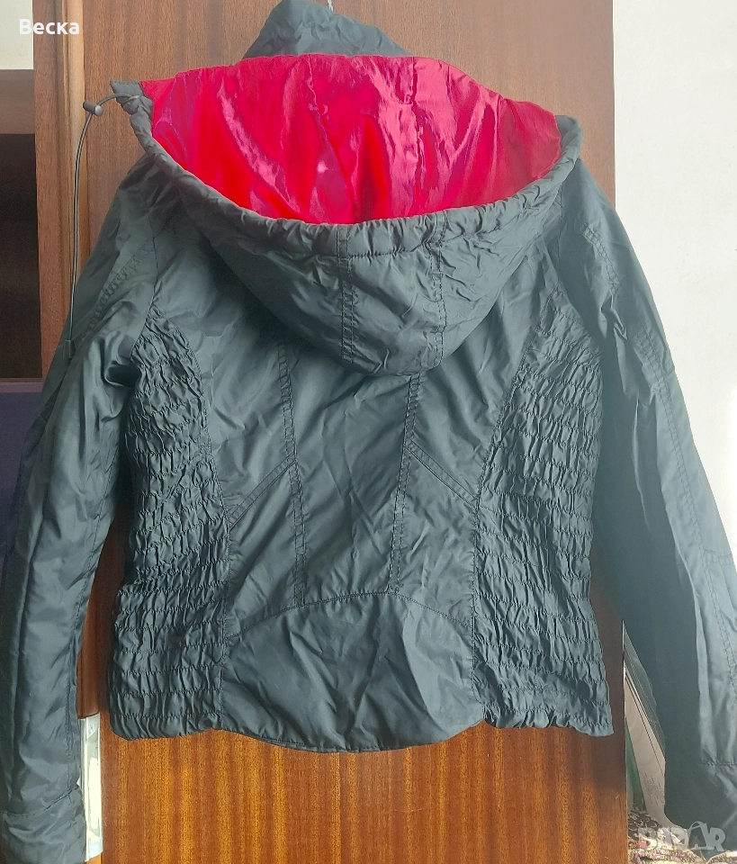 Продавам дамско яке в отлично състояние. Моделът е лек, удобен и подходящ за пролет и есен. Черният външен слой е универсален и лесен за комбиниране, а ярката червена подплата придава модерен и ефектен акцент.