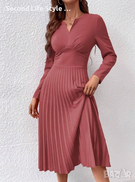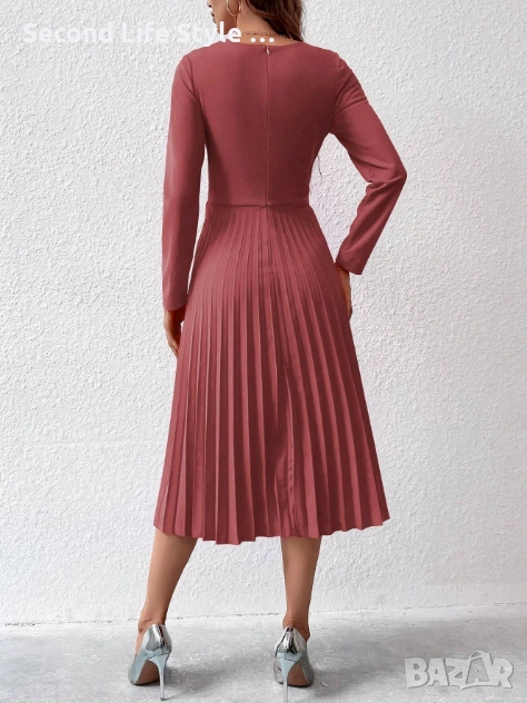 Дамска стилна миди рокля с плисирана пола в цвят пепел от рози