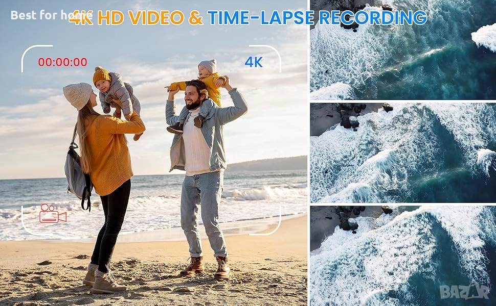 💦4K Водоустойчива камера и 65MP снимки: 4K водоустойчивата камера може да записва ultra HD 4K видео, 4K резолюцията обикновено има по-ярки цветове, 65MP/65 милиона пиксела CMOS сензор за снимки прави детайлите по-ясни, което прави видеото ви за гмуркане с шнорхел да изглежда по-живо и максимално възстановява красотата.