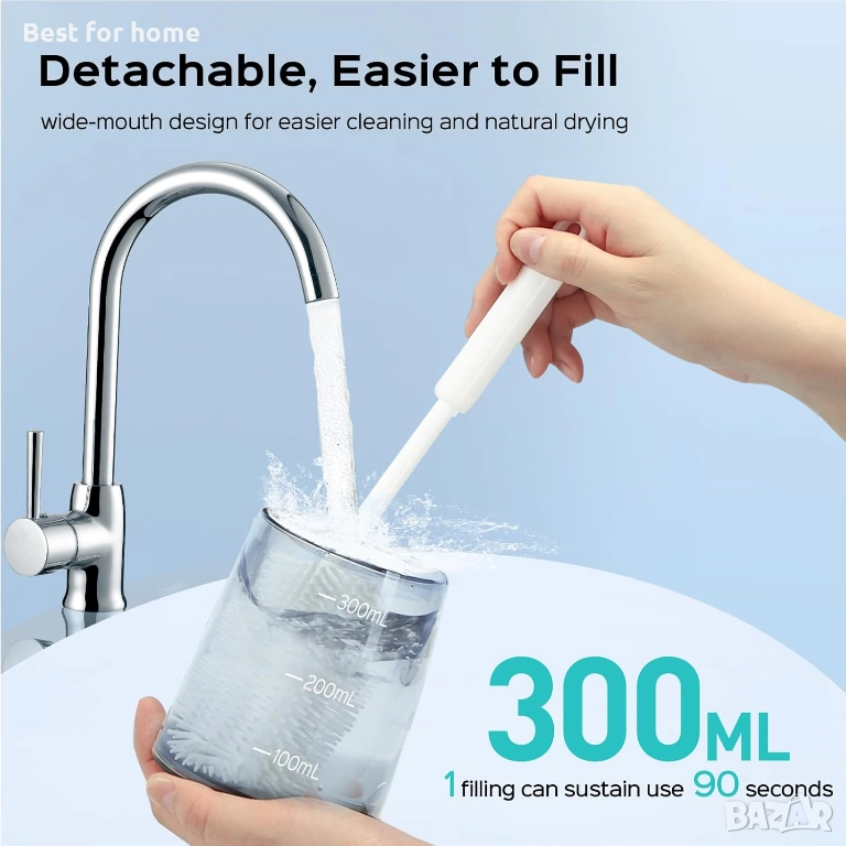 Голям резервоар (300ml): Един от най-големите в класа си, което позволява пълно почистване без нужда от постоянно досипване на вода.