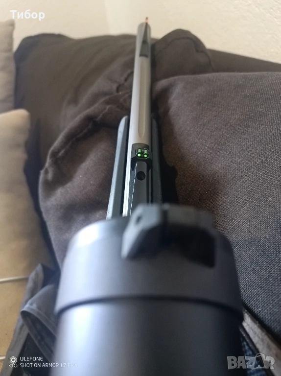 Батерия CR2032. Нов кожен заключващ калъф и нов ремък. Карабината не е простреляна. Оптични мерни прибори и муфа за супресор. Прочети описанието.
