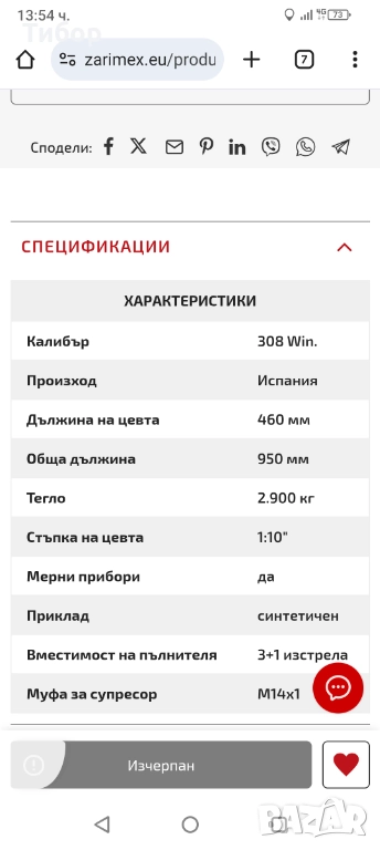 Карабината е чисто нова неизползвана. Закупена септември 2025г. Оборудвана с чисто нова оптика Sightmark - Core HX 2.0 3-9x50 DX. - Duplex скала