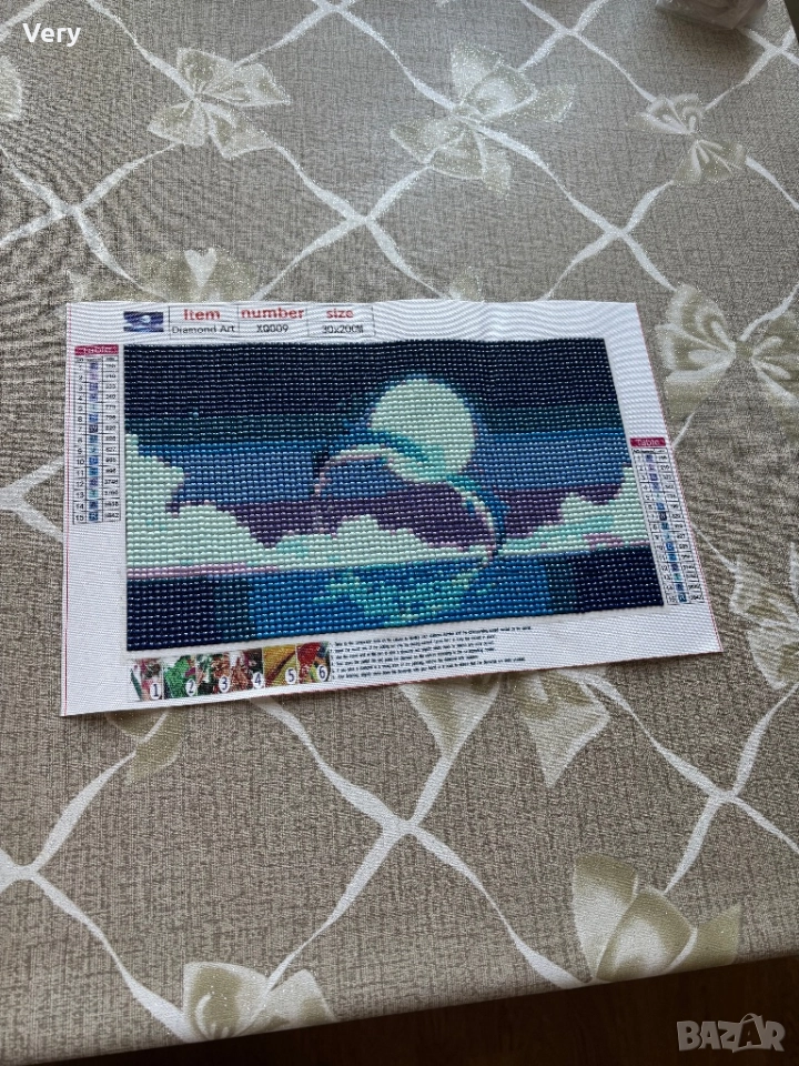 5D диамантен гоблен,ръчно налепен с кръгли камъчета.Делфини.Р.р:30Х20см.Цена:по договаряне! → Обява 52954679