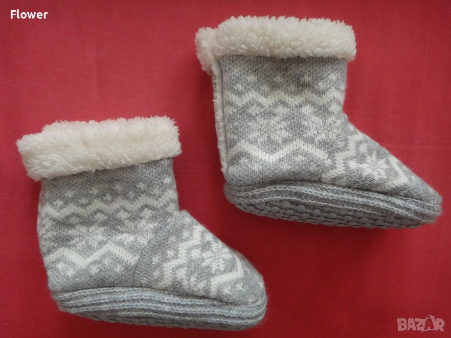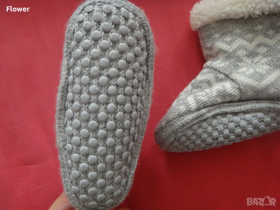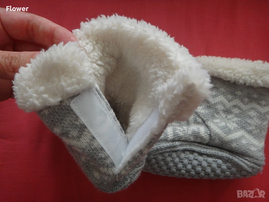 Удобни домашни пантофи със скрита закопчалка със самозалепваща се лента отзад на конча. С мека подплата и подметки със защита против подхлъзване.