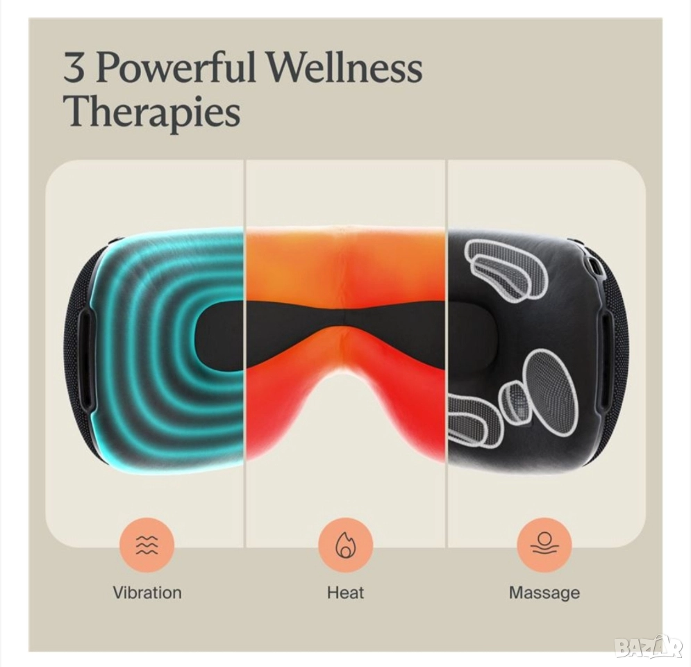 SmartGoggles V2 предлага научно обоснована комбинация от компресионен масаж, топлинни и вибрационни терапии за подобряване на релаксацията, намаляване на стреса, облекчаване на главоболие от напрежение, облекчаване на умората на очите и подобряване на съня - само за 15 минути или по-малко! Сега по-лек и по-тих, SmartGoggles V2 е по-удобен от всякога и създава перфектна среда за релаксация, независимо къде се намирате. В допълнение, иновативното лечение SmartRelax използва патентован биометричен сензор за създаване на персонализирани вибрационни модели въз основа на сърдечния ви ритъм, за допълнително насърчаване на релаксацията и намаляване на сърдечната честота.