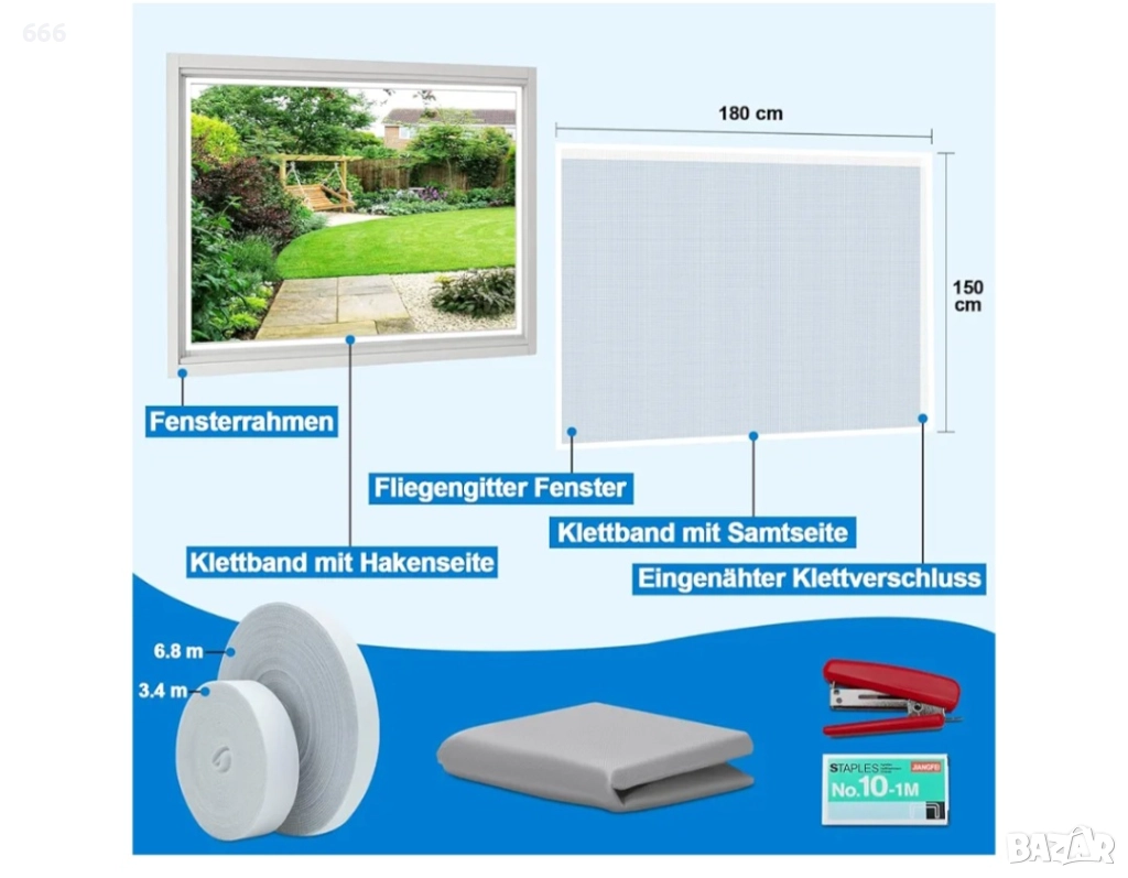 мрежа против комари е 150*180 см и може да се реже свободно, като гигантско платно, което ви позволява да я персонализирате по ваш вкус, подходяща за различни видове и размери прозорци и лесна за ползване от „Направи си сам“.