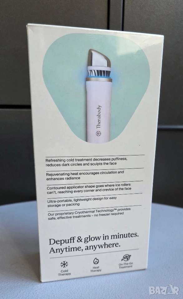 TheraFace Depuffing Wand от Therabody е иновативен уред за грижа за лицето, създаден да намали подпухналостта, да подобри еластичността и да възвърне естественото сияние на кожата. Благодарение на клинично доказаните си температурни режими, устройството осигурява професионални резултати в уюта на дома.