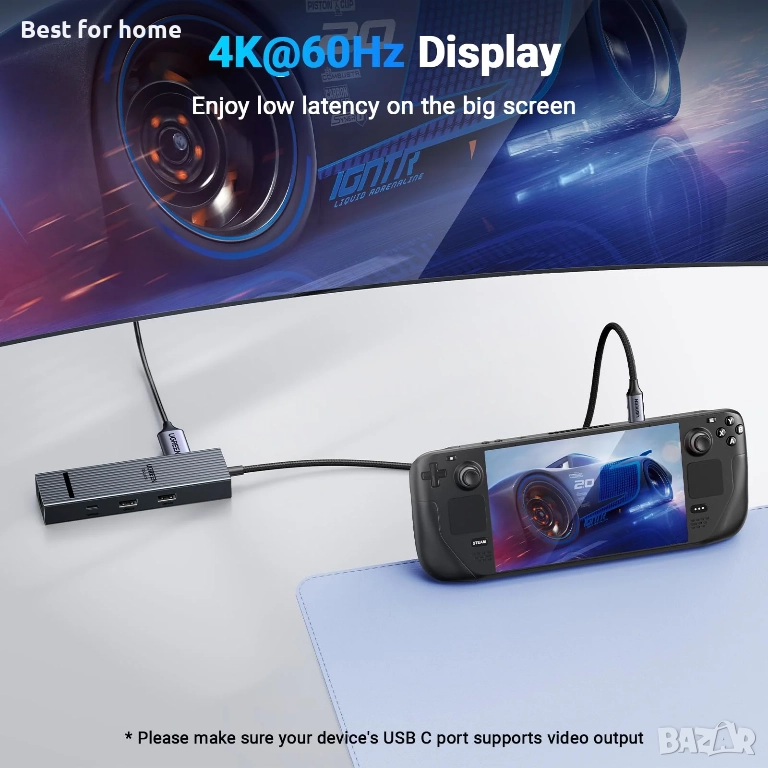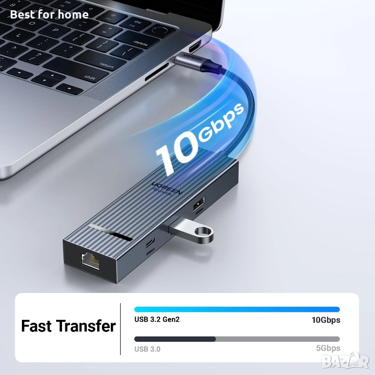 HDMI 4K @ 60Hz: Поддържа кристално чисто изображение с висока честота на опресняване (повечето евтини хъбове поддържат само 30Hz).