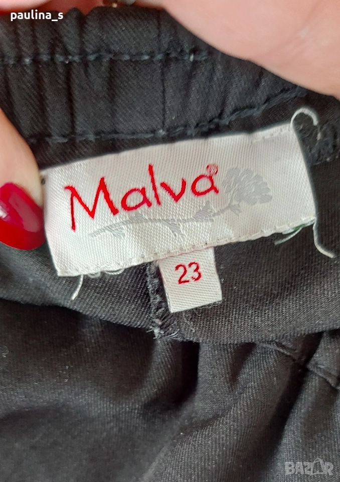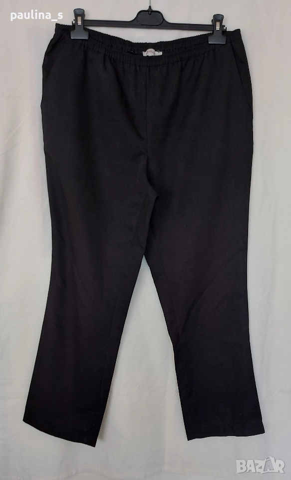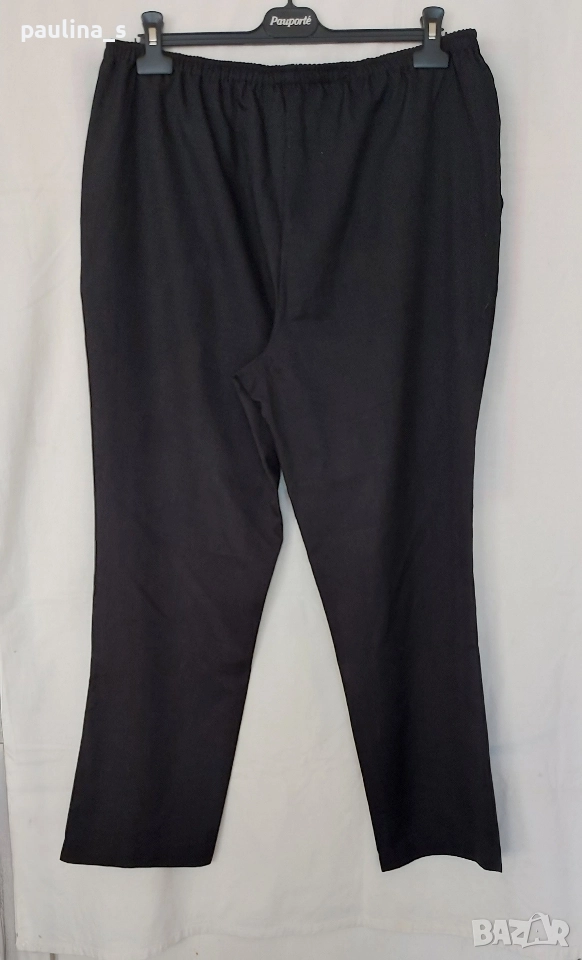 2️⃣L / 2XL - "Malva florea". Цената е крайна, без пазарлъци 20 евро. Дамски черен марков панталон с нормална талия на ластик, с коси джобове, прави крачоли, изчистен модел. Материята е 100% полиестер, немачкаема. Брандът е доста елитен, цената не се коментира по никакъв начин! Перфектни са. Без дефекти и етикет, една бройка.