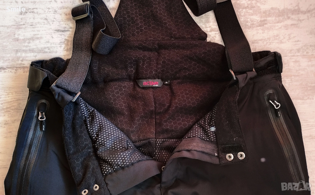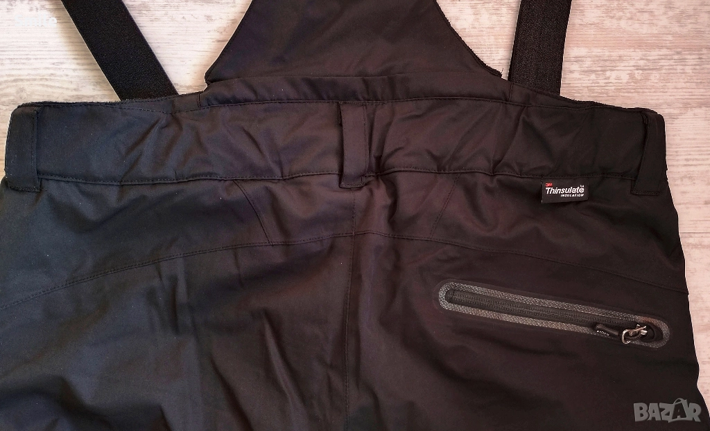 Мъжки ски / сноуборд панталон/гащеризон ACTIVE by Tchibo / TCM с 3М Thinsulate Insulation (изолационна материя с микрофибърна технология, която е тънка, лека и ефективно задържа топлината, но позволява на влагата да излиза). С Recco ® - система за защита при лавини. В отлично състояние, без забележки, като нов. Отстрани крачолите са с ципове за вентилация. В долната част крачолите са също с ципове. На кръста от двете страни има малка част с велкро за регулиране, а отзад е с ластик. Презрамките са с цип към панталона. Цвят: черен графит.Размер XL. Размери, измерени от мен: ширина в кръста - 54 см. /в разпънато положение/.; дължина - 104 см., дължина от чатала - 77 см., ширина крачол горе при чатала - 33см. Изпращам с "Еконт" или "Спиди" .