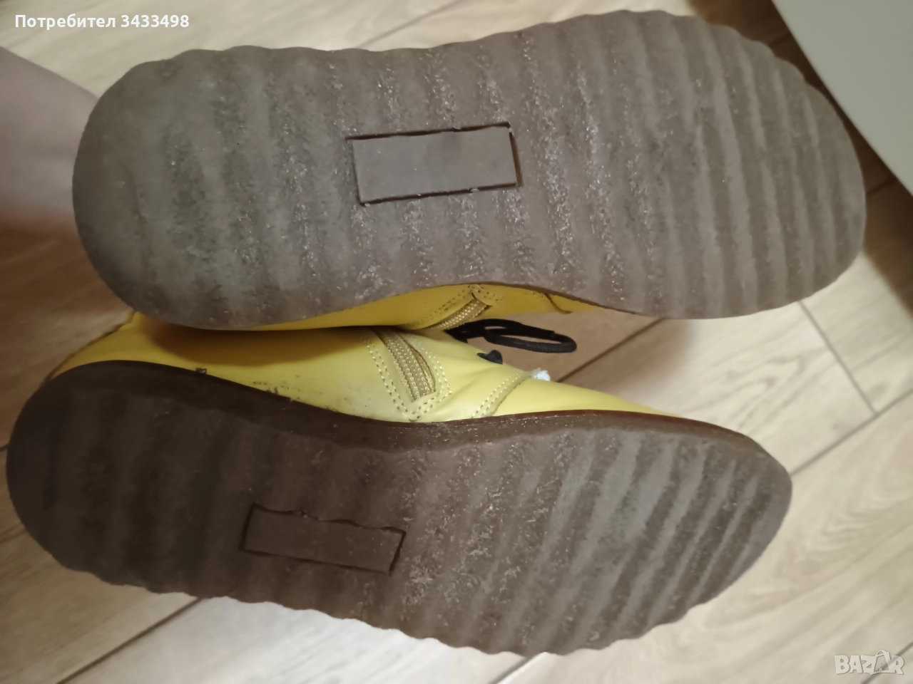 Много запазени жълти боти. Едната отпред има лека черта на бомбето. Меки и удобни, просто нямам с какво да ги нося.