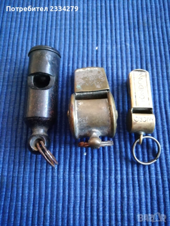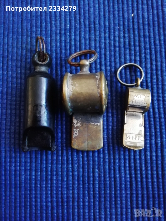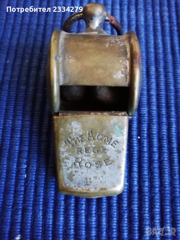 полиция, във войни и за Олимпийски игри от съдии. Този модел е ,,The Amcme Regd Rose" 1911-20год., отстрани под розата има релефен номер 576579, запазена добре за годините си, свири, цена15€; N:3 стара метална съдийска свирка за футбол и други, хит от 50-те години марка ,,MEY-FLASA" ,,RENTO" ,,MICRO-LONDON", цена 5€.