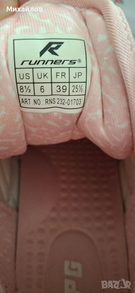 https://www.runners.bg/detski-maratonki-runners-APG-Pink-Shark. Маратонките са обувани 3 пъти. Като нови. Не се харесаха на детето. Размер 39.
