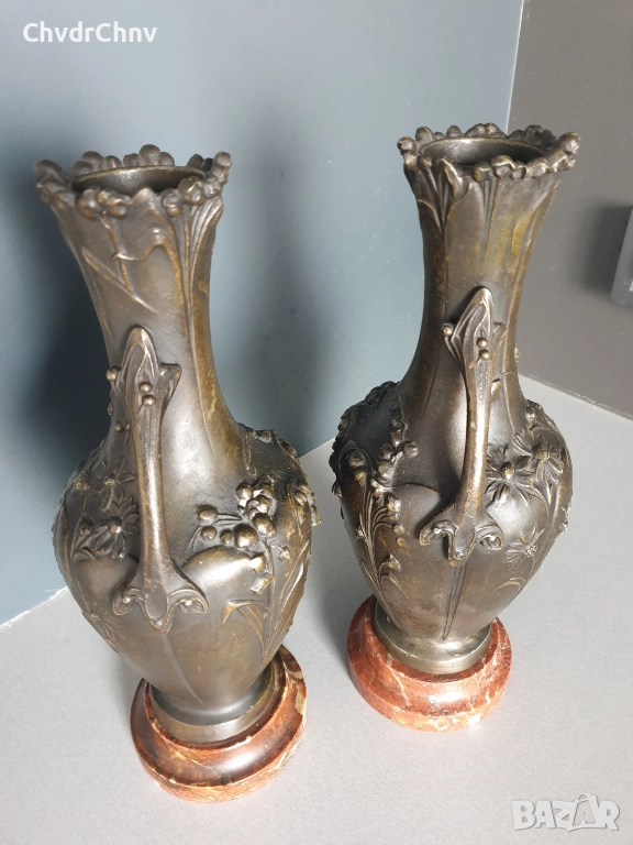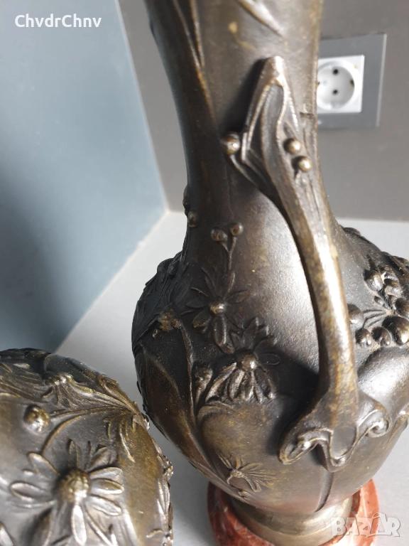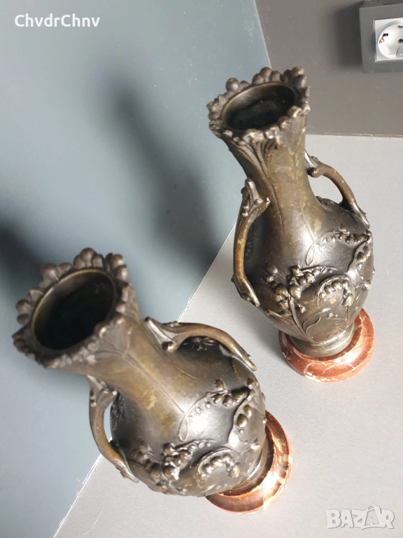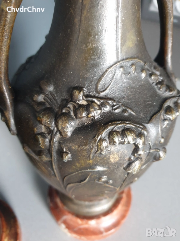 чифт2бр Франция 1800-те/32см-4кг/стари френски фигурални пиедестални вази с дръжки/ЦАМ-мрамор