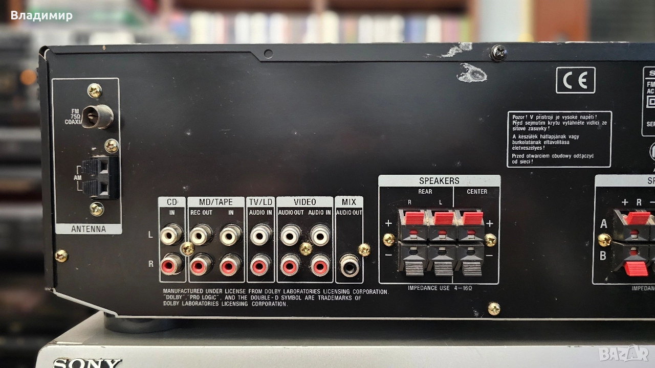 Продавам качествен стерео ресийвър с Dolby Prologic декодер на Sony. Номиналната му мощност е 2х60w. Дистанционното управление не е налично. Функциониращ добре с дребни външни забележки по горния капак и задния панел.