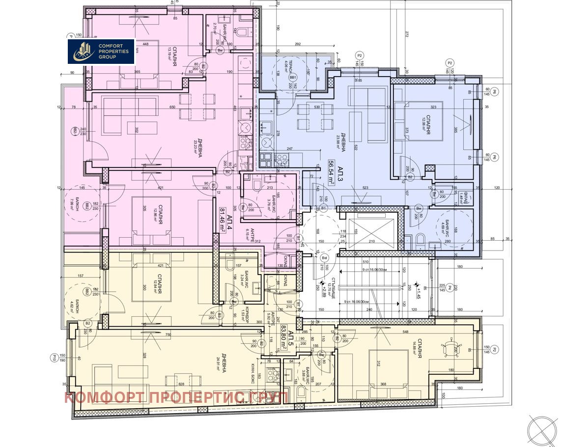 За продажба се предлага: Тристаен Апартамент разположен на 2 етаж от 7 етажна жилищна сграда, с площ от 97.02 кв.м с общи части и 81.46 кв.м застроена площ