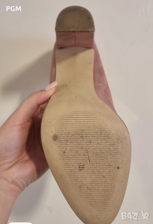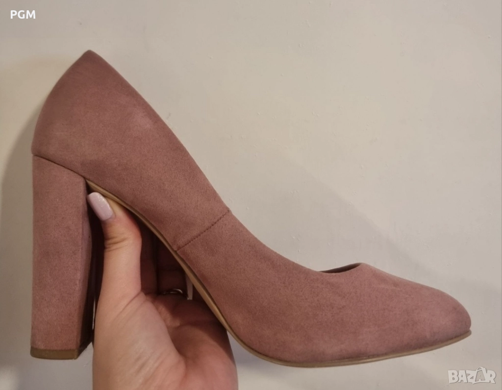 Розови велурени токчета с дебела ток 41 номер → Обява 52957134