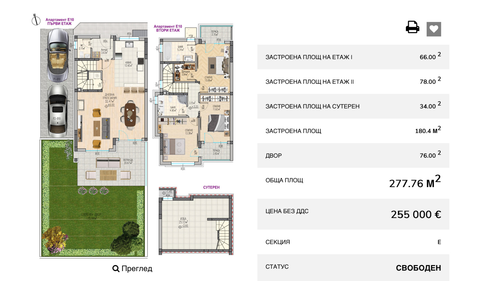 24 дуплекс къщи цени: от 238 000 до 276 000 , площ: от 180 до 185 м²