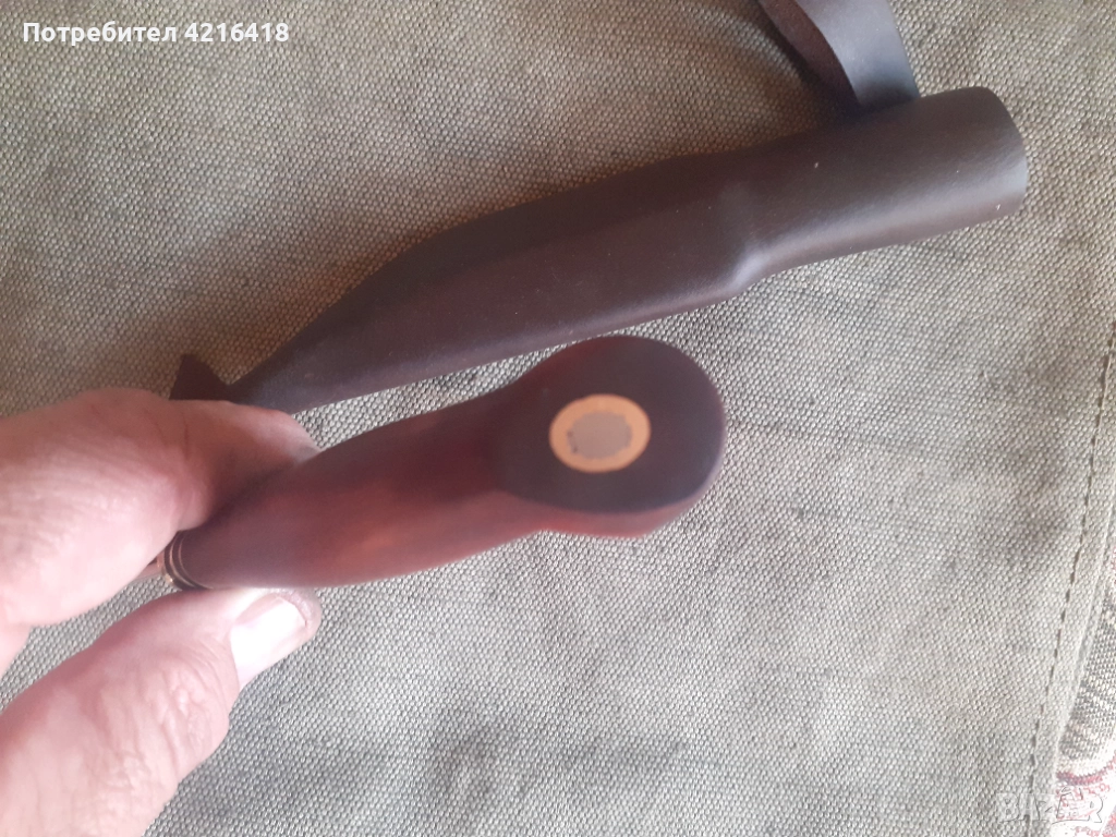Финка ръчна изработка орех,месинг,стомана.кания естествена кожа.