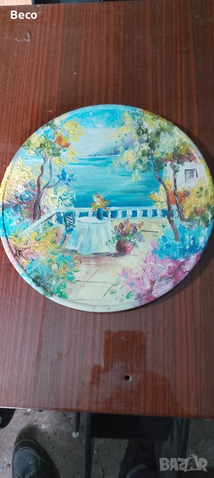 продава овална картина рисувана с маслени бои.. размер 20/20 см върху дървен носител