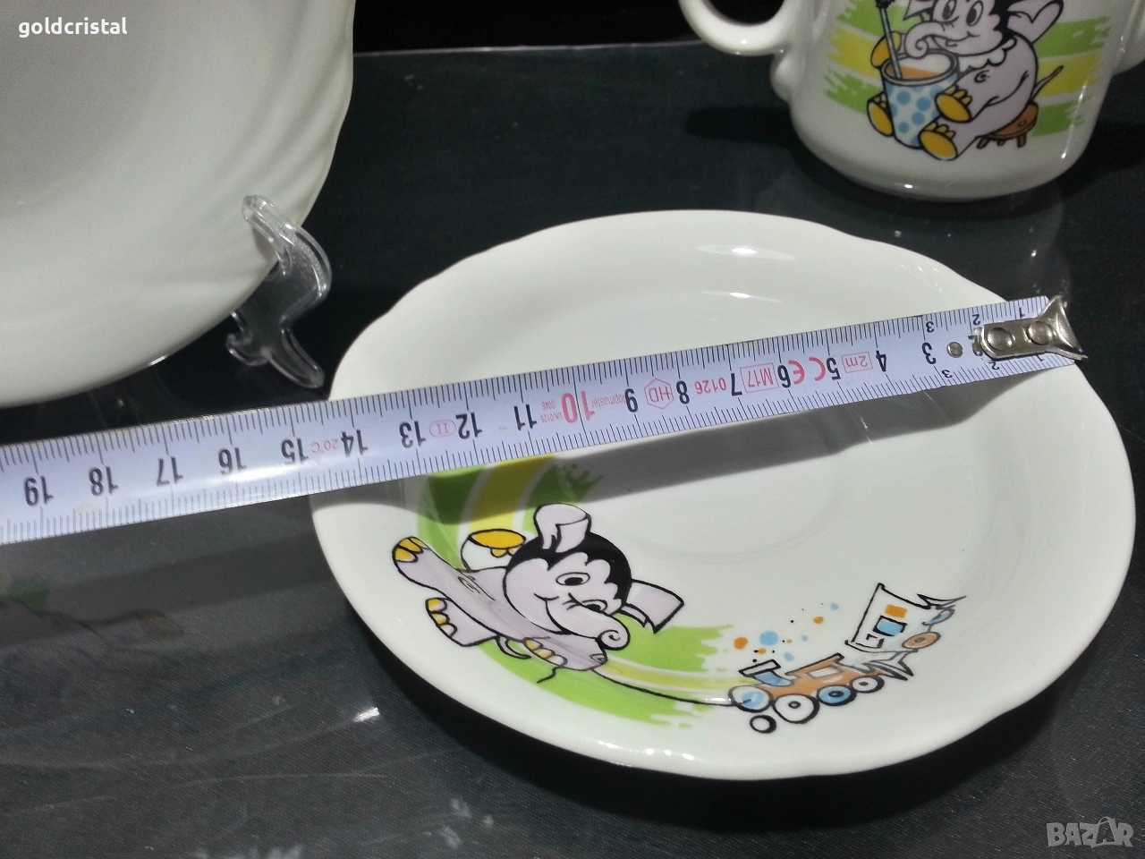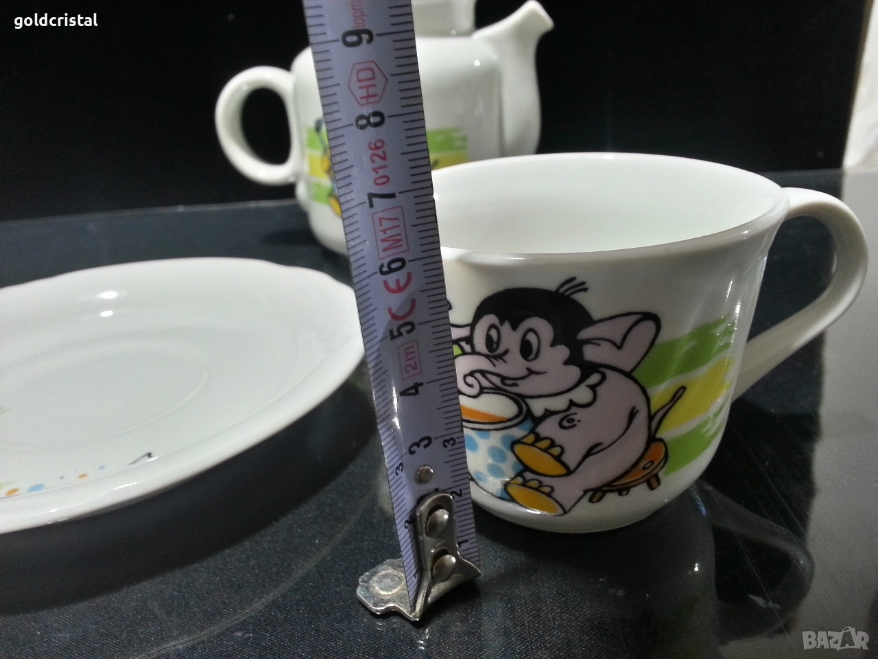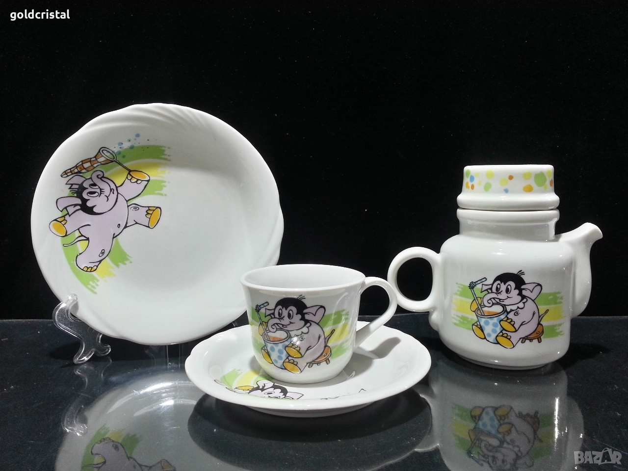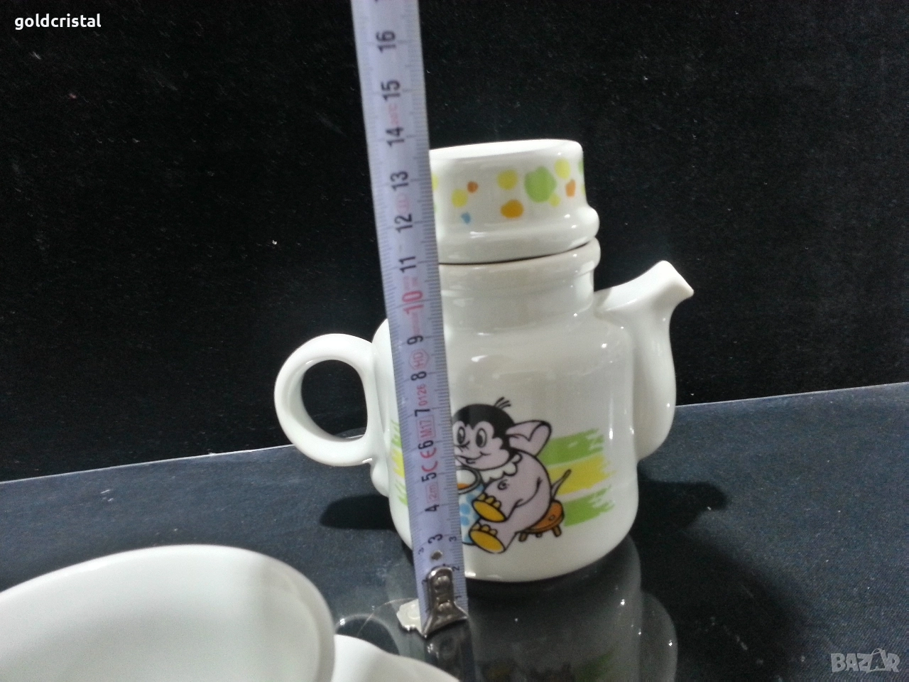 Стар български порцелан чиния чашка с чинийка каничка на която капачката и поставка за яйце детски комплект сервиз комплект сет лот ретро арт декор винтидж колекция стари старинни антикварни предмети обзавеждане за дома и семейството подходящи за подарък за ценители и колекционери