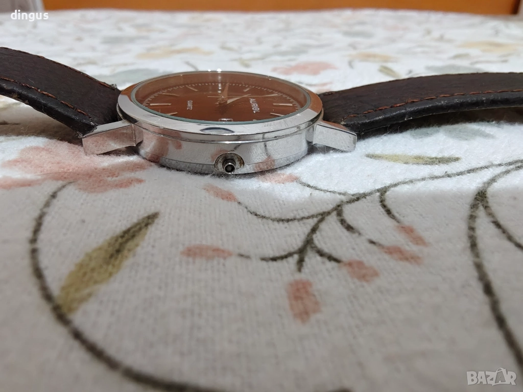 Часовникът е красив, но няма коронка и не работи. Липсва също така и гайката на каишката. Кварцов. Изпращам по „Еконт“ или „Спиди“ с преглед и тест.