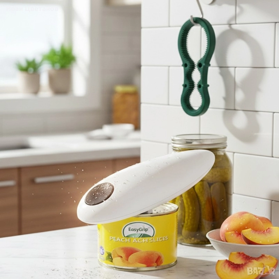 Продукт: Автоматична отварачка за консерви + ръчна отварачка за бутилки/буркани (комплект);