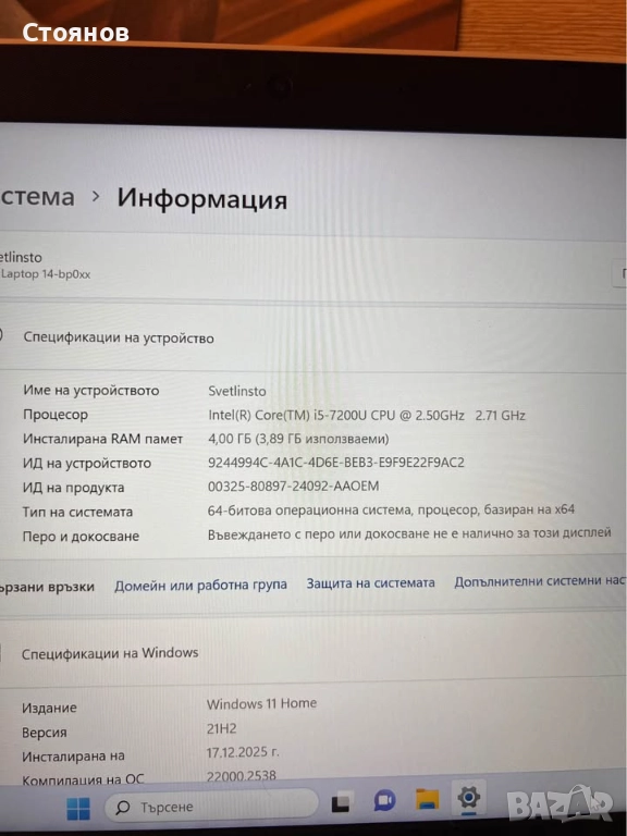 Неразличим от нов.Преинсталиран, профилактиран , готов за работа.HP NoteBook Intel i5-7200 / 4 gb Ram
