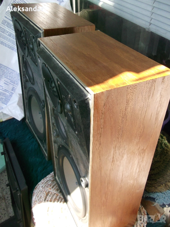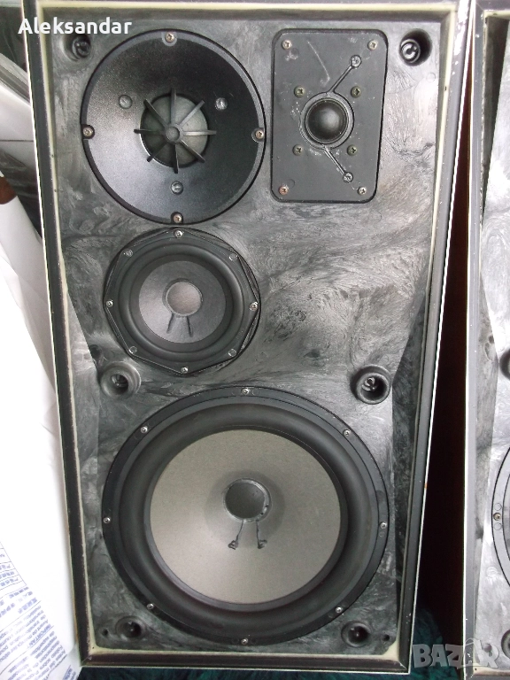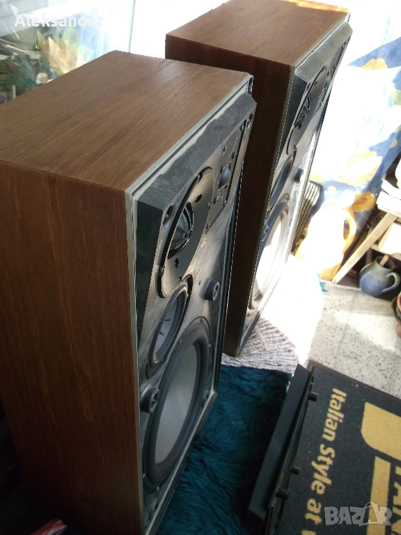 Иначе тези датски единици са в добро визуално и техническо състояние, с леки ожулвания по фурнира и сравнително запазени грилове, като най-фрапиращ за мен е чукнатия горен десен ъгъл, видим на снимките. Построени са с 10" бас на Seas, среди на