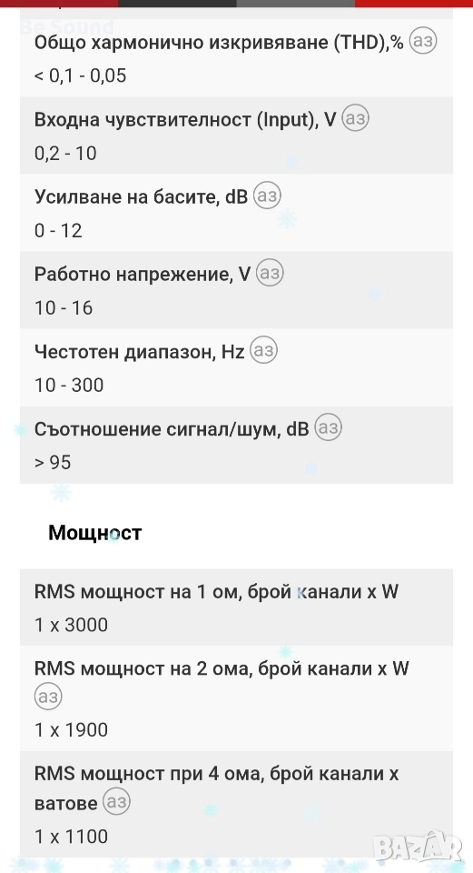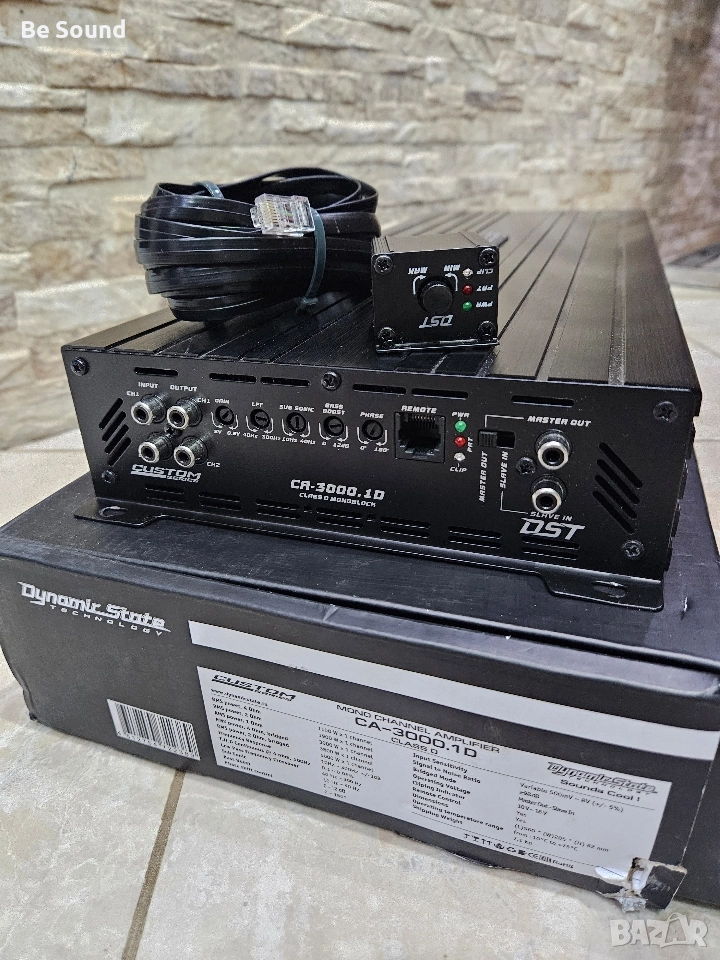 Продават Усилвател Моноблок клас Д Dynamic State Custom CA- 3000.1 Като нов!!! Свирил броени часове, пълен комплект.! Наличен ремоут контролер с функция Cliping! Стабилен и на 0,5 ома - Корейска схемо-техника Работещ в мостов режим (Link)с друг такъв усилвател, произвеждащи- 6000w/2ohm Цена: 799лв / 409€ ! Възможност за внос с поръчка и на нови такива от този модел. Марката разполага и с по Големи и по малки по мощности усилватели: 8000.1; 5000.1 ; 2500.1 ; 1600.1; 1000.1 ; 700.1 ; 4×90 ; 4×150 ;4×200; 4×300; 6×200; 2×1500 ; 2×2300 и други ☎️0 8 7 7 3 9 1 2 7 7