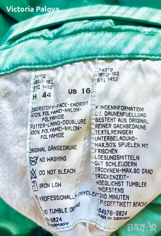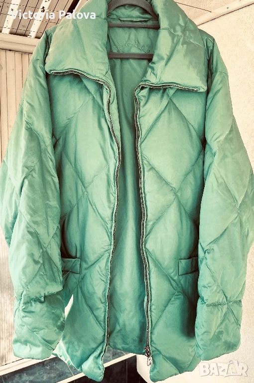 BOGNER е уникална със своята 90-годишна история в луксозно ски облекло, високотехнологични материали и елегантен дизайн, иконичен цип и премиум качество - лидер в “athluxury” сегмент. Якето е с оригинален чист гъши пух - естествен лек и топъл изолатор, който осигурява перфектна защита от студа, без да тежи на тялото. Този премиум пълнеж запазва формата си години наред, предлагайки несравним комфорт дори в най- суровите зимни условия. Подплатата е двойна, 100% полиамид- найлон,с допълнителен слой мекота и издръжливост. Дизайнът е с диамантен капитониран модел и висока яка, а цветът напомня свежа мента и добавя елегантност и свежест към всяка визия. Красота, комфорт и функционалност. Рамо - 60см, ГО - 70см, дължина - 88см, ръкав - 67см, яка - 19см.