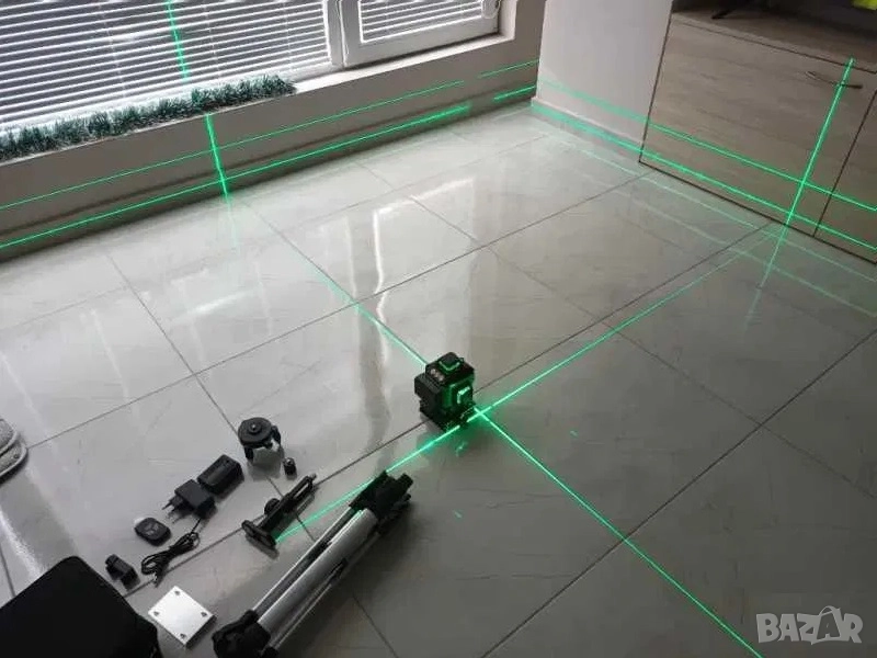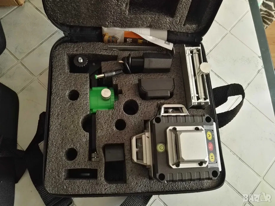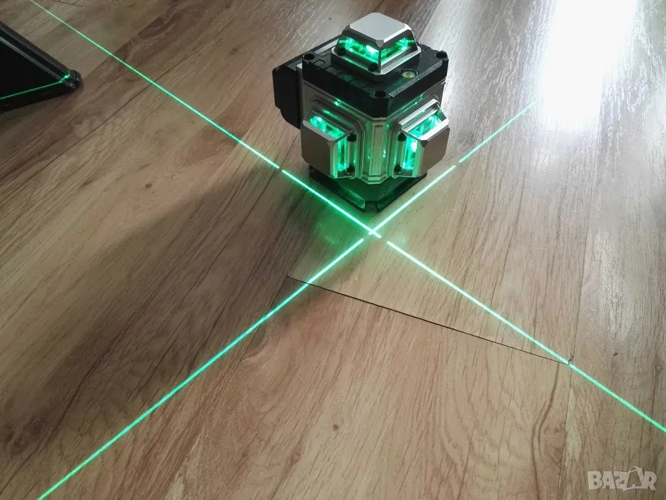 2. Продавам нов лазерен нивелир 16 линии. Влагоустойчив и прахоустойчив, степен на защита IP54. Работна дистанция 25м. Грешка при измерване +- 2мм/10м. Включени чанта, дистанционно, 2 броя батерии Li-ion 3,7V 2400MAh, магнитна стойка за повърхности, повдигаща стойка, зарядно, разтягащ се трипод до 1 метър, конектор за статив, стойка за монтаж на стена, адаптор от 1/4" на 5/8", метална планка и др. Снимки 1, 2, 3, 4 и 5.