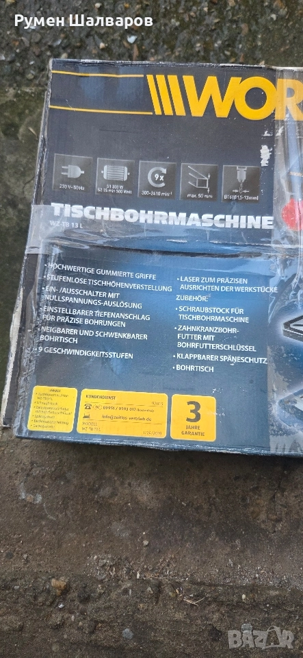 настолната бормашина е закупена нова от Германия.Поради това че не се използва дълго време,взехме решение да я продадем.Кашонът е отворен само за да се погледне вътре,не е сглабяна и използвана.Качеството на бормашината е на високо ниво.
