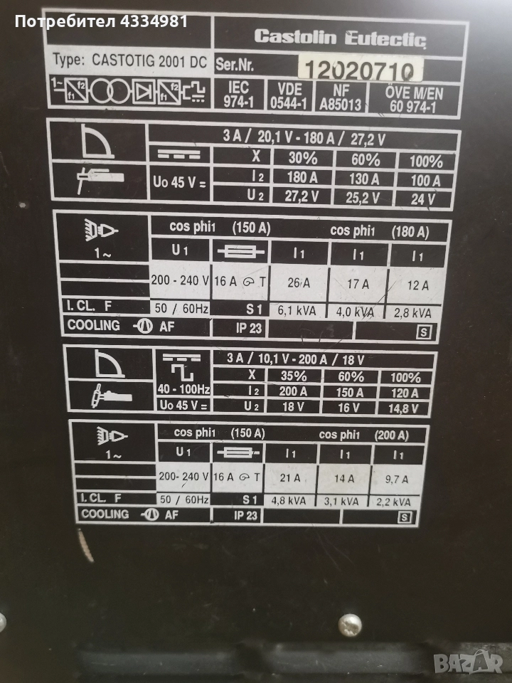 ВИГ заваръчен апарат Castolin CastoTIG 2001 DC → Обява 52960547
