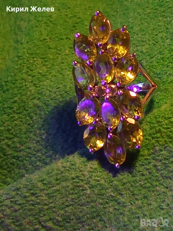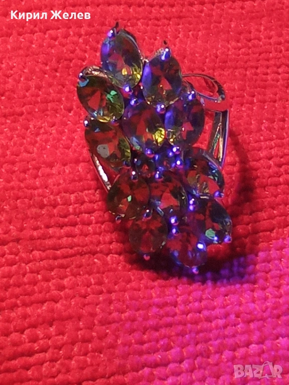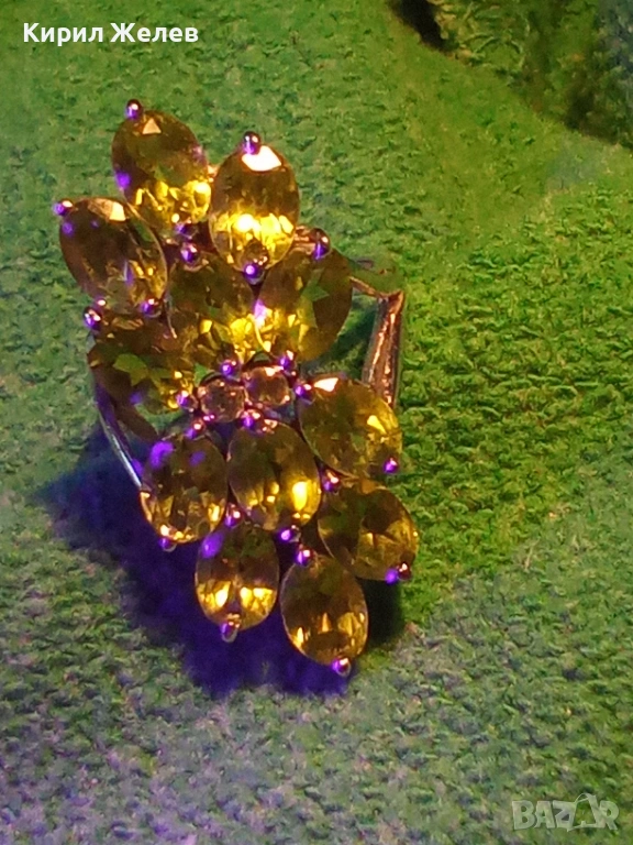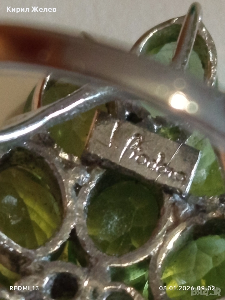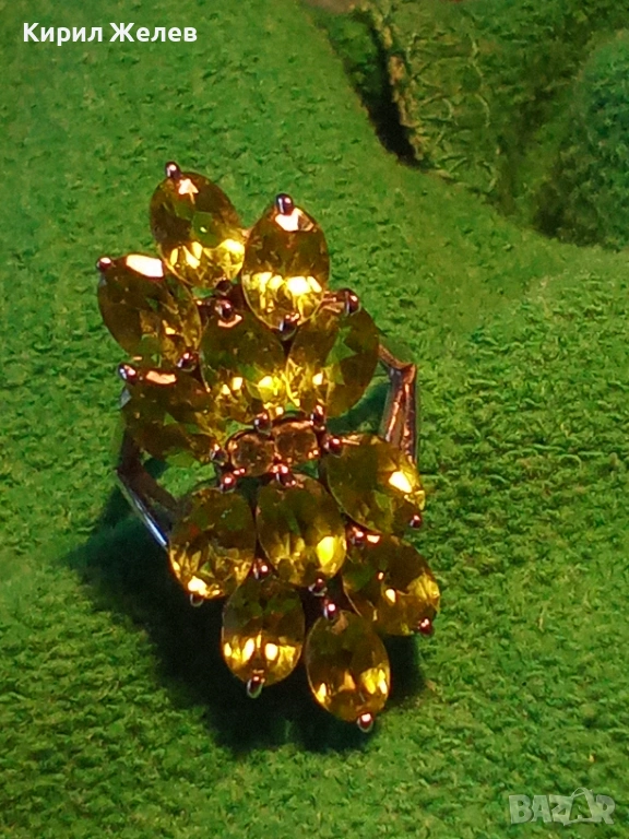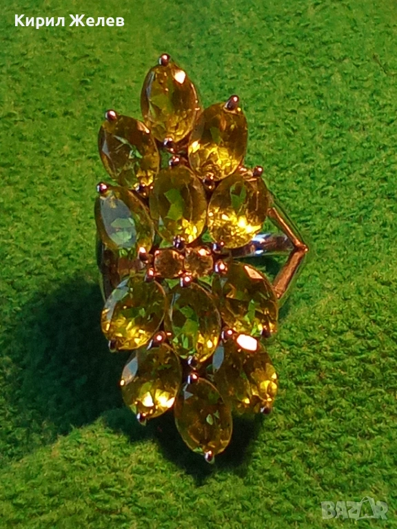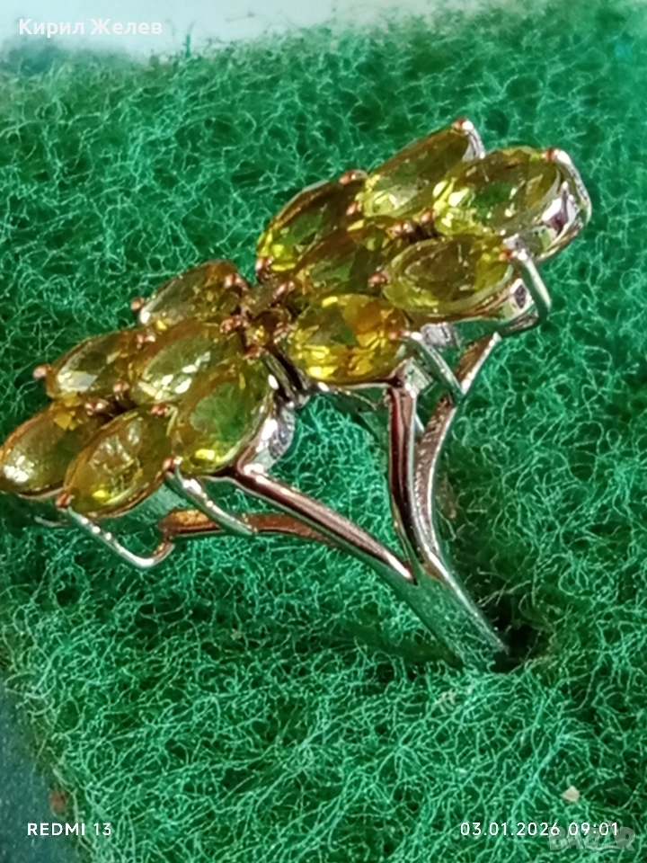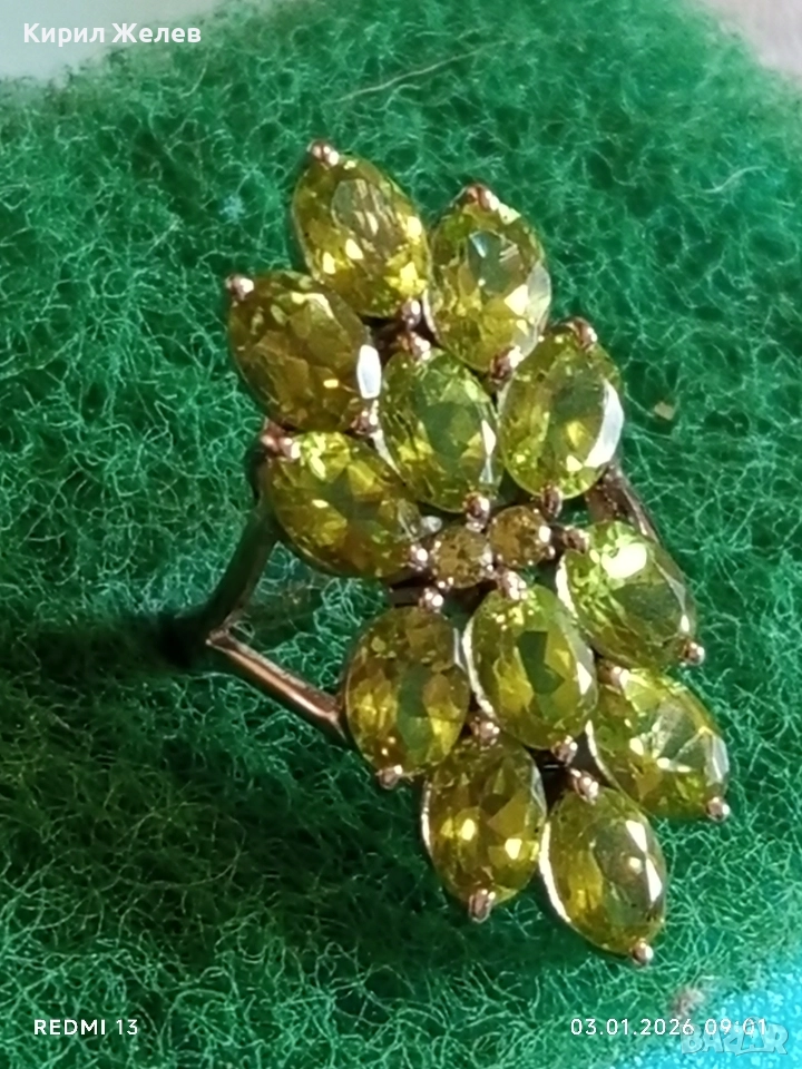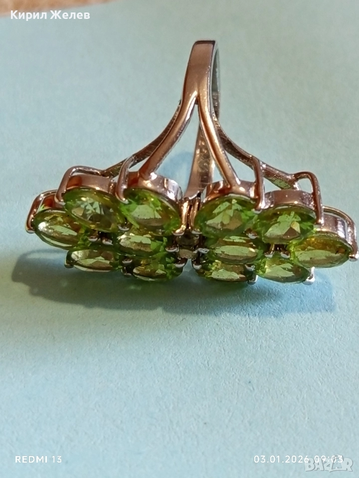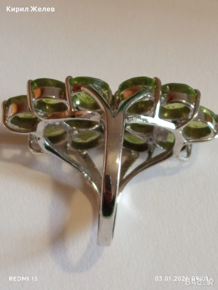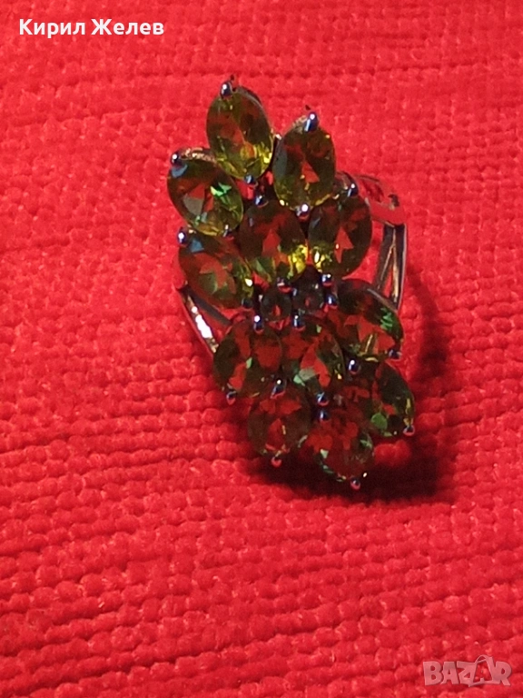 Ефектен сребърен пръстен Trifari с множество камъни ОЛИВИН подходящ аксесоар за ежедневието 27102