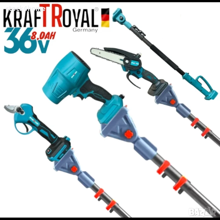 2: Акумулаторна Лозарска Ножица KRAFTROYAL 36V 8,0AH Съвместим с Телескопичен Прът