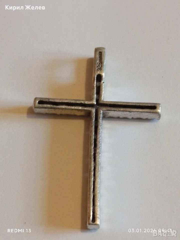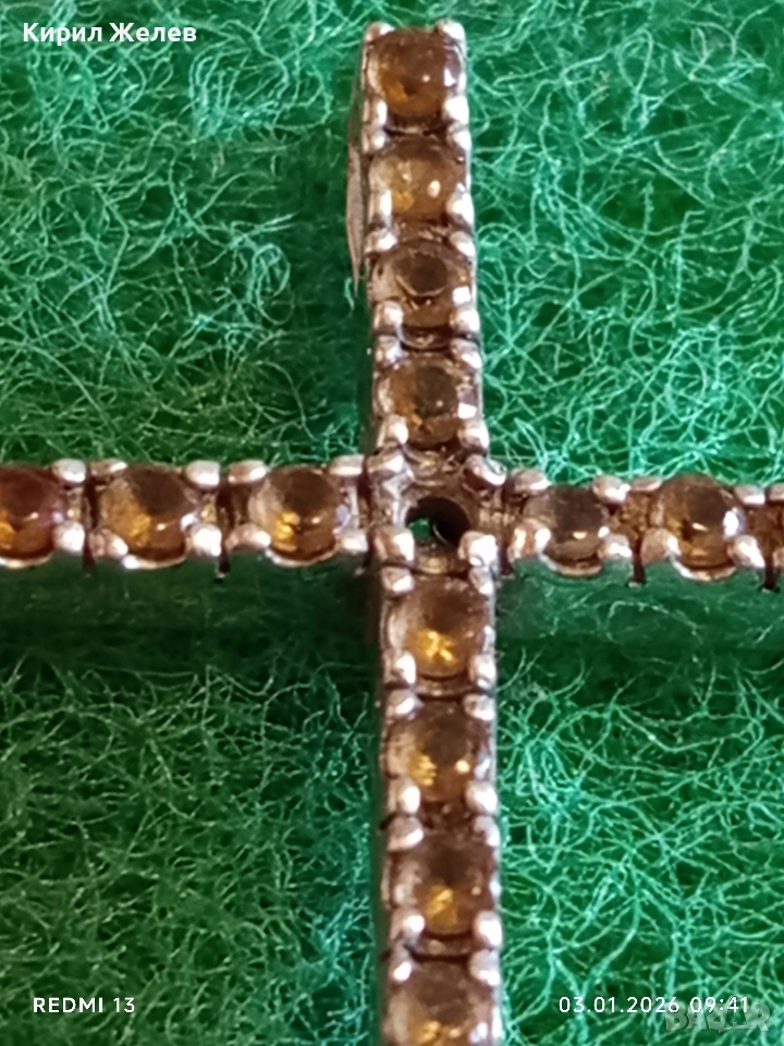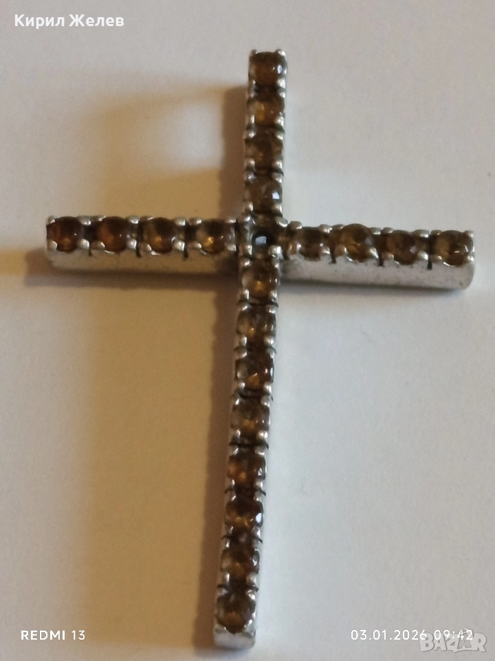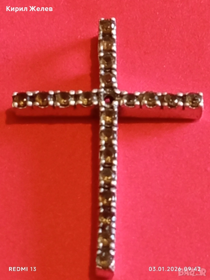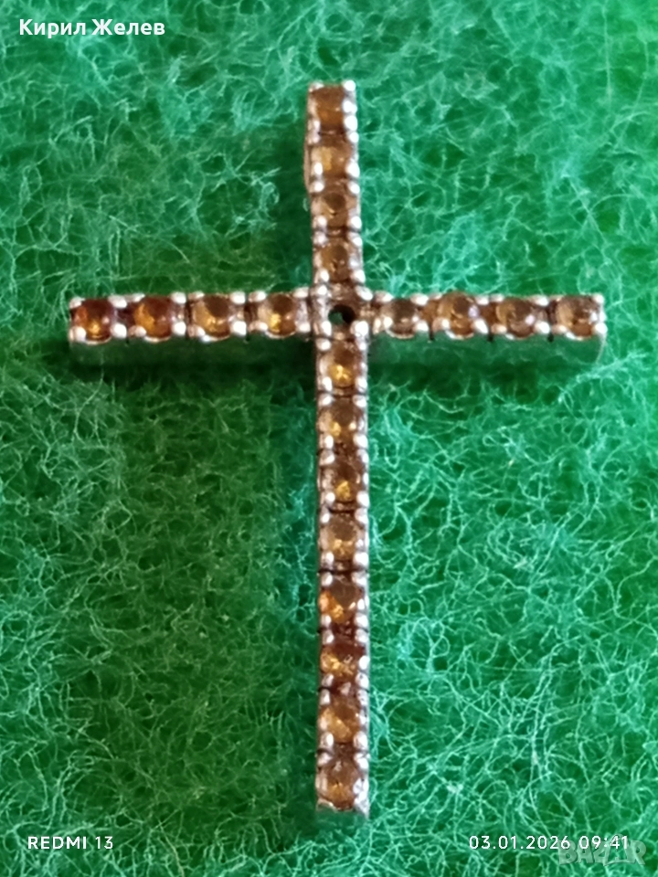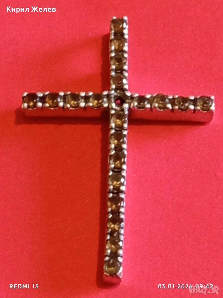 Класически сребърен кръст с равномерно разположени малки фасетирани кристали ЦИТРИН 39217