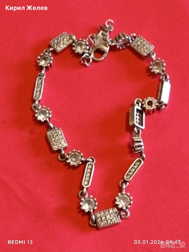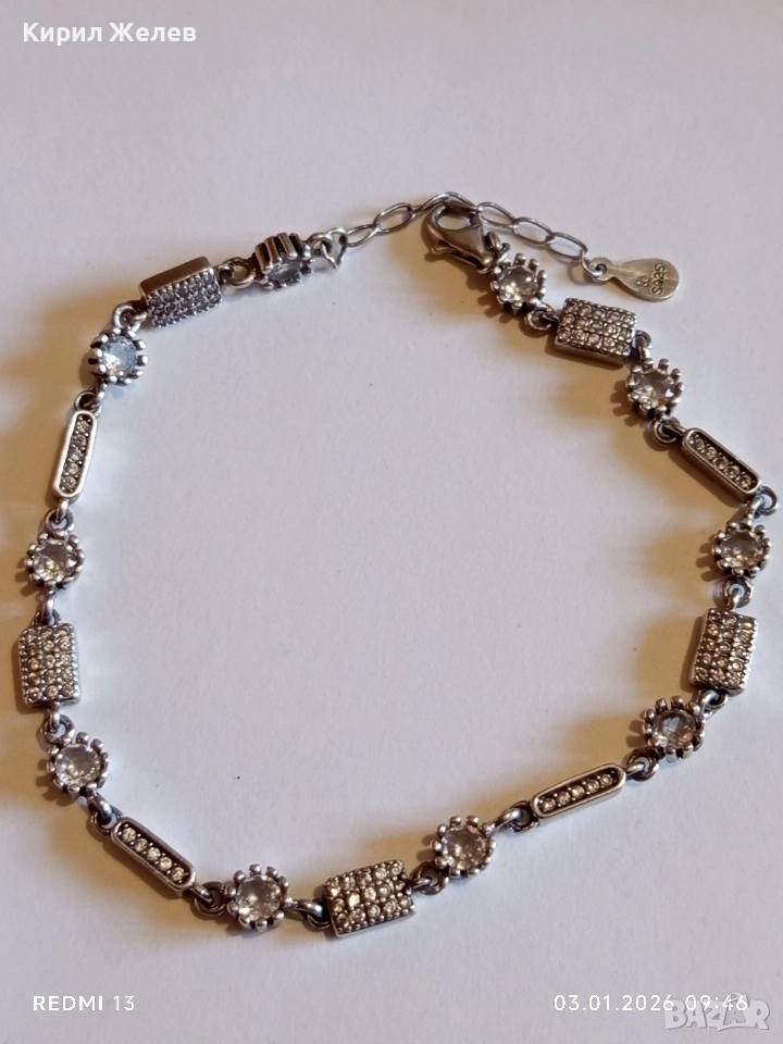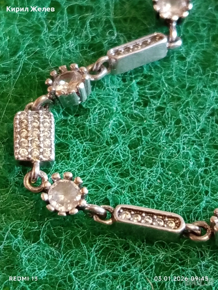 Ефектна сребърна гривна с инкростирана с кристали ЦИРКОН ювелирна изработка 33296