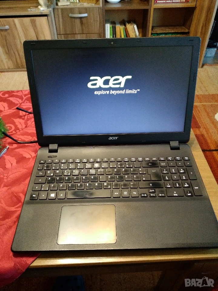 Лаптопът е ползван, има следи от употреба по капака, но работи без проблеми.