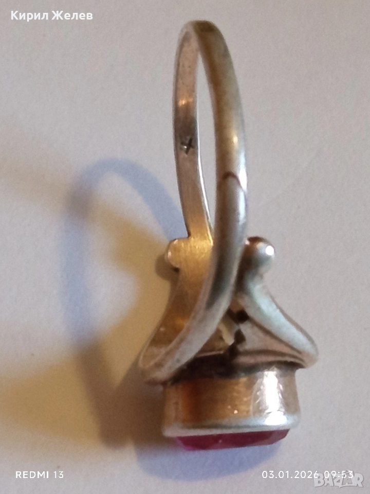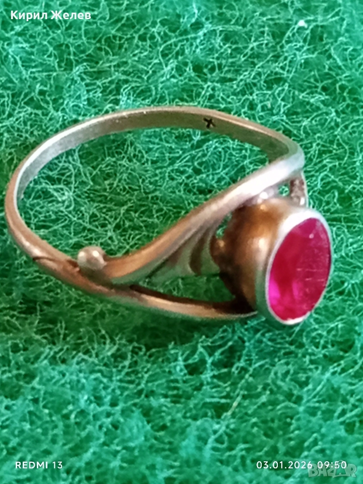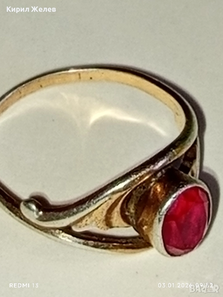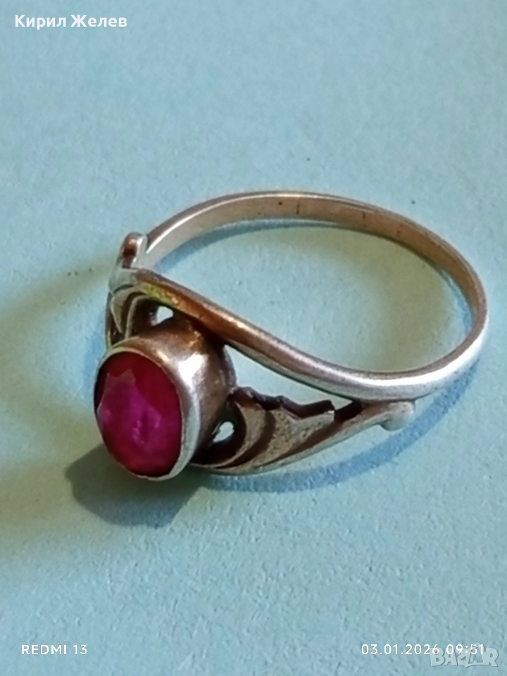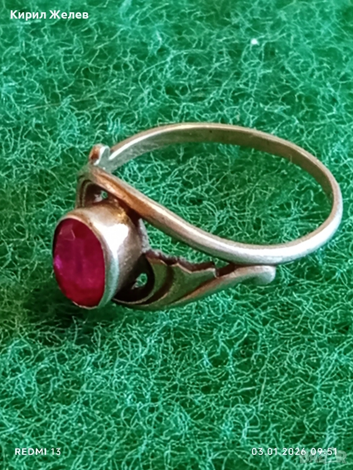 Винтидж сребърен пръстен СССР с червен Рубин майсторска ръчна изработка 31141