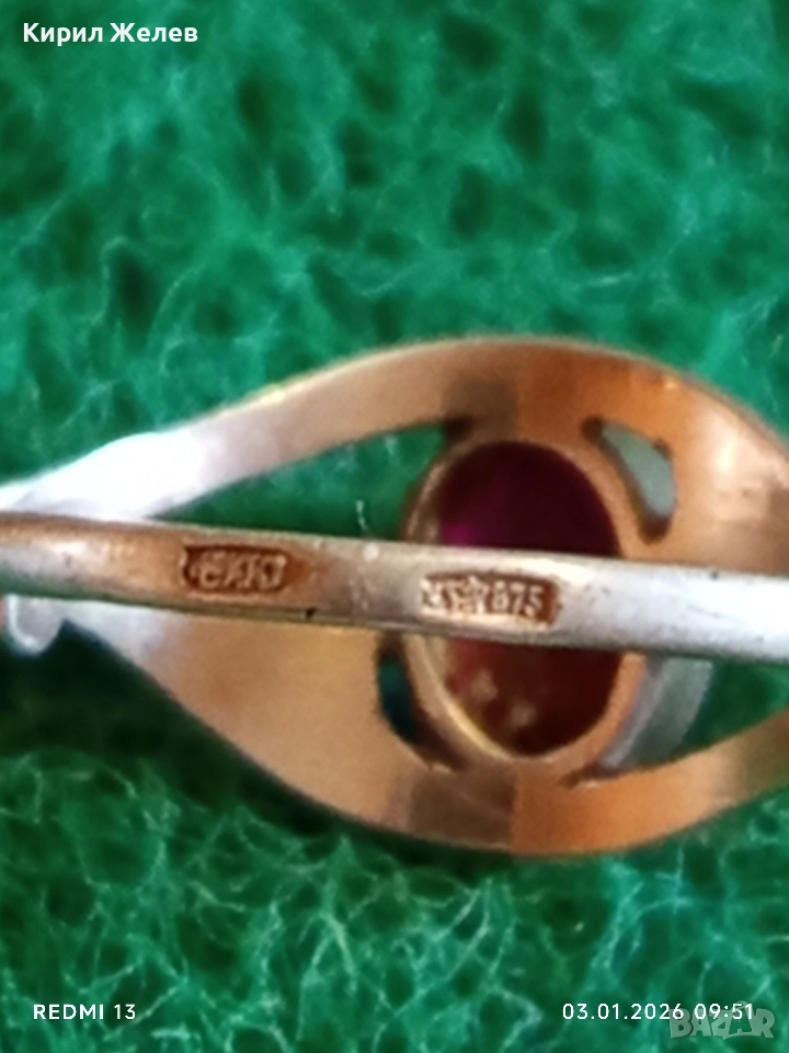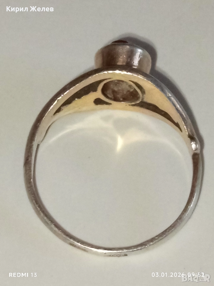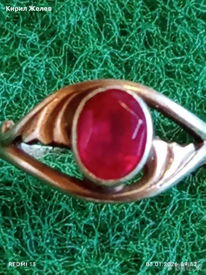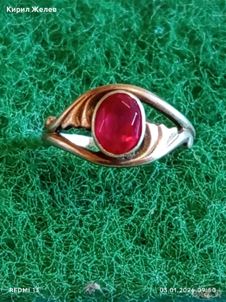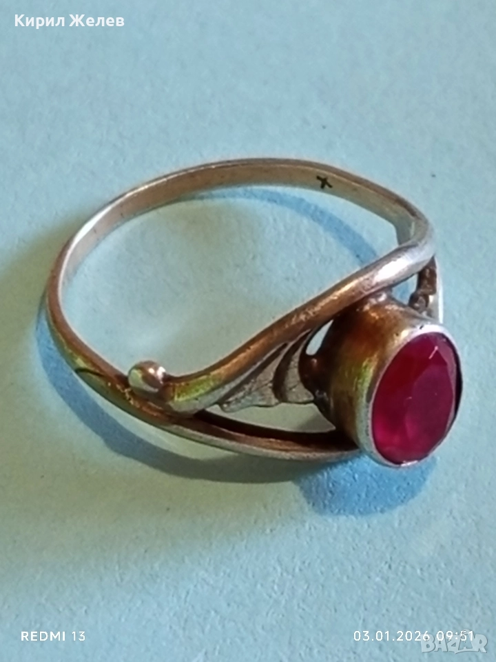 Винтидж сребърен пръстен СССР с червен Рубин майсторска ръчна изработка 31141