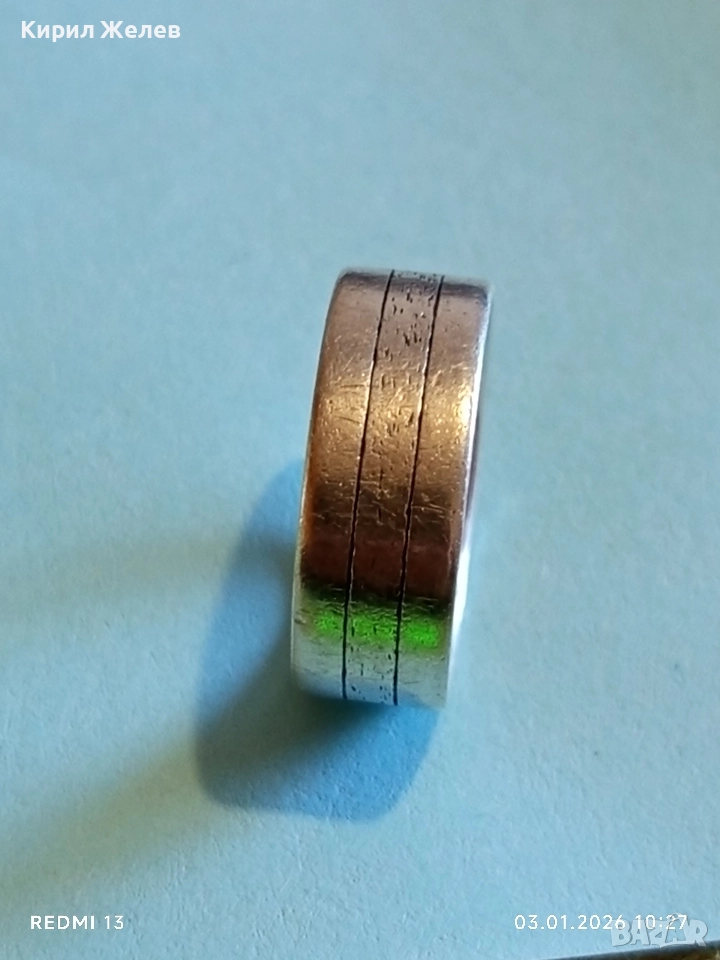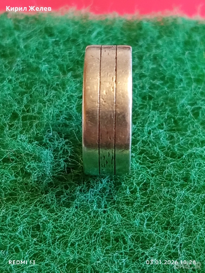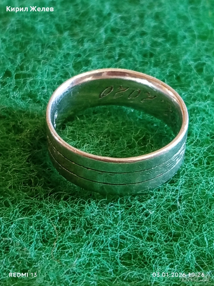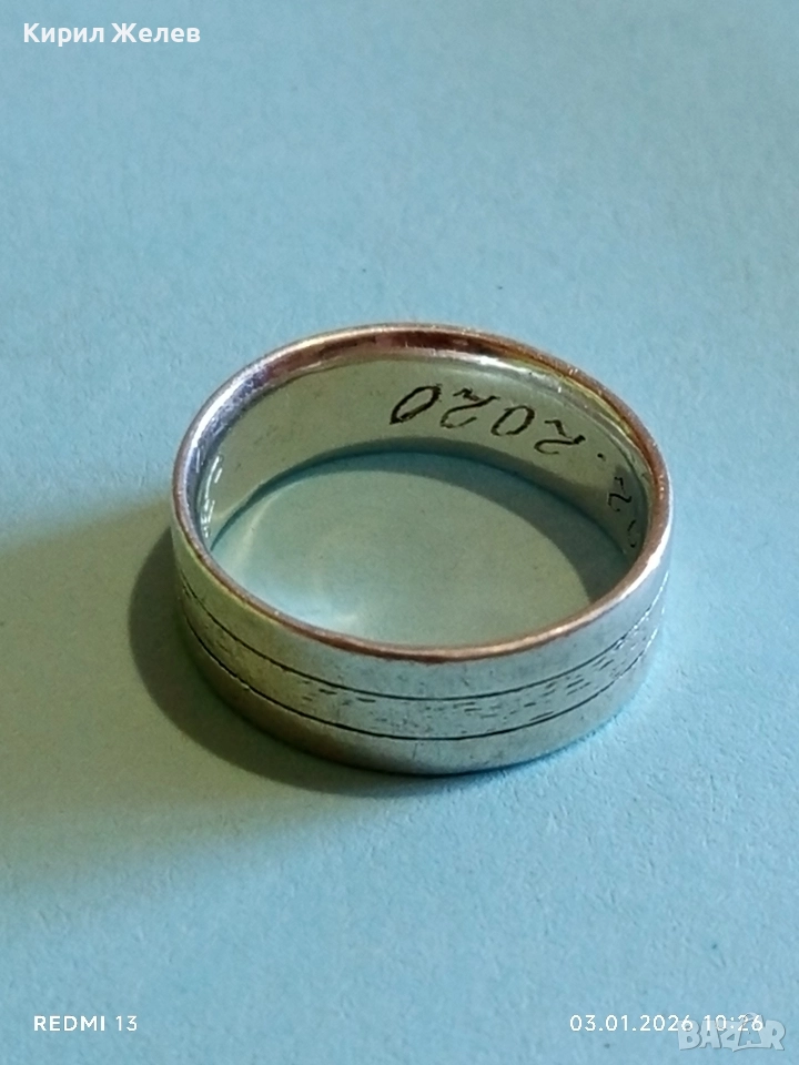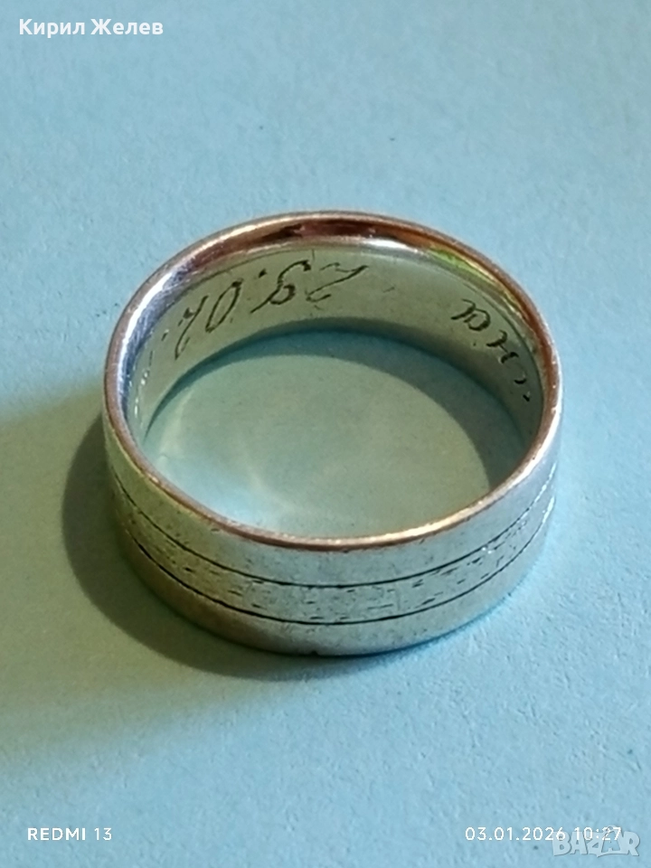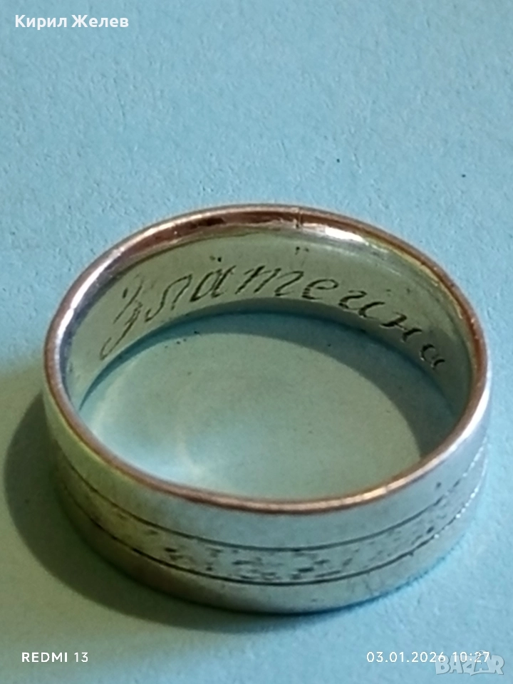 Сребърен пръстен тип халка с надпис майсторска изработка 52476