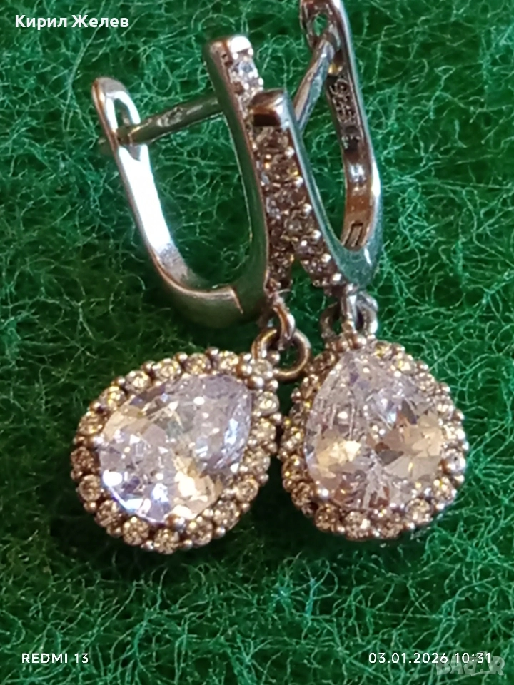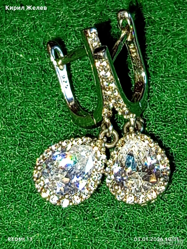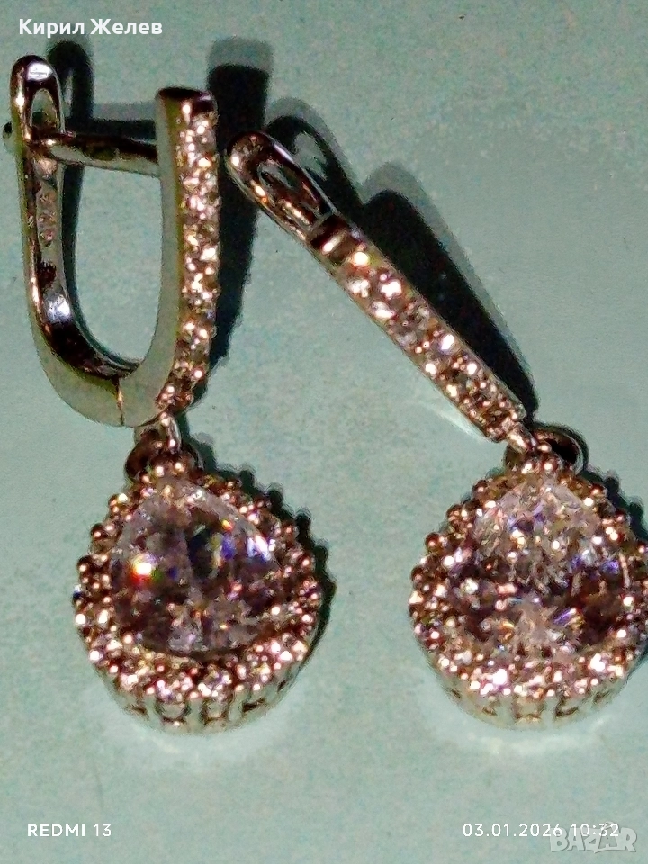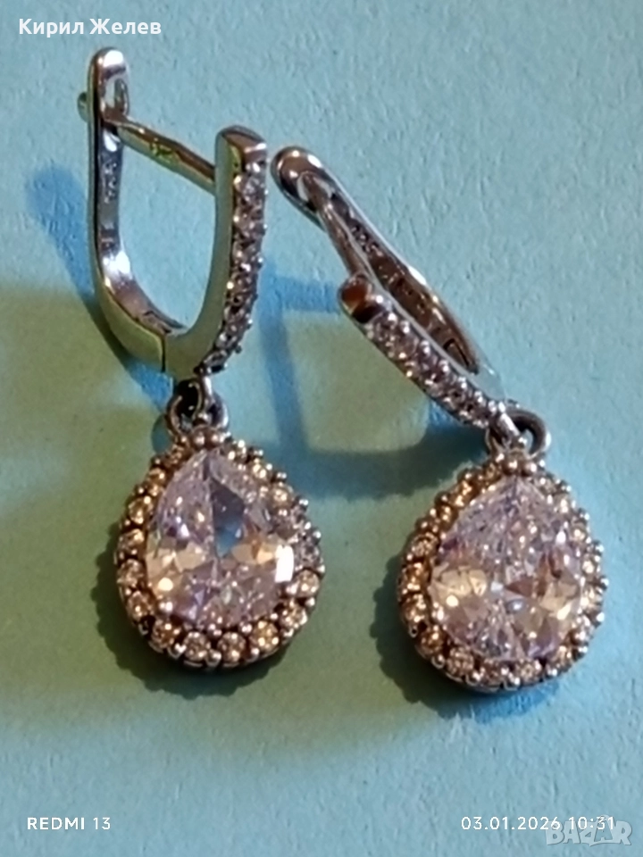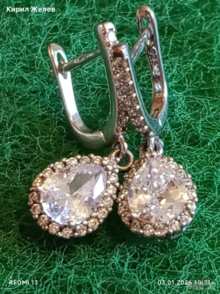 Висящи сребърни обеци с ювелирно фасетиран Диамант нежно елегантно бижу 26124
