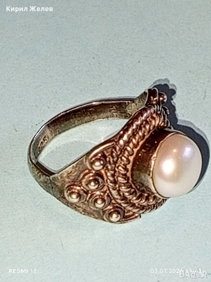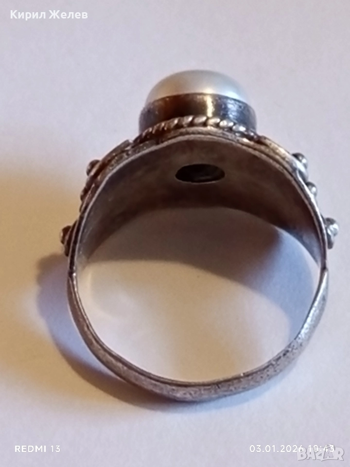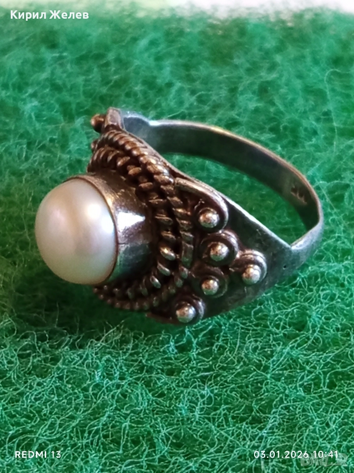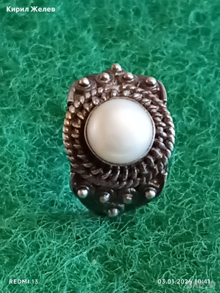 Сребърен пръстен Етно стил с Перла орнаментиран с гранулация ювелирна изработка 52457