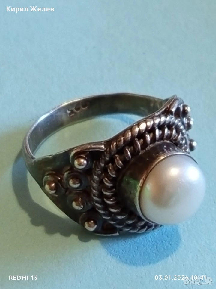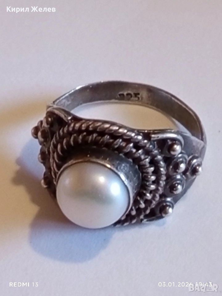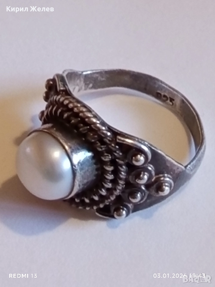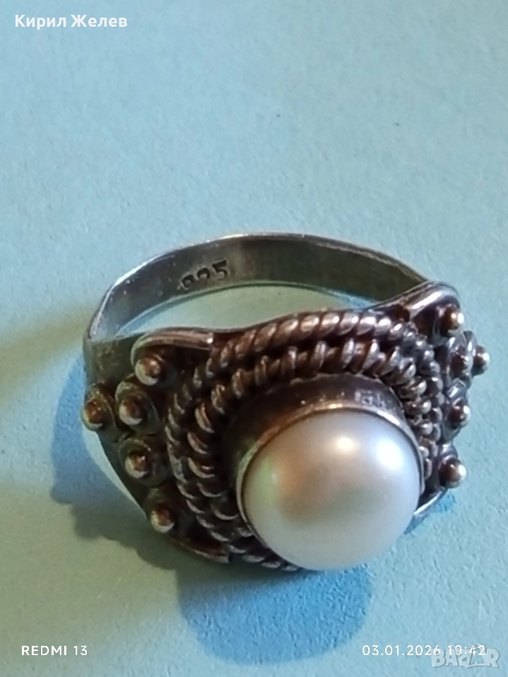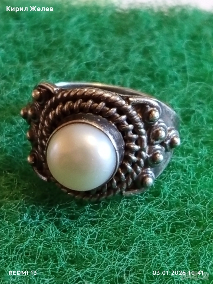 Сребърен пръстен Етно стил с Перла орнаментиран с гранулация ювелирна изработка 52457